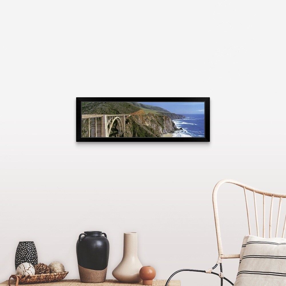"Bridge on a hill, Bixby Bridge, Big Sur, California," Black Framed Print