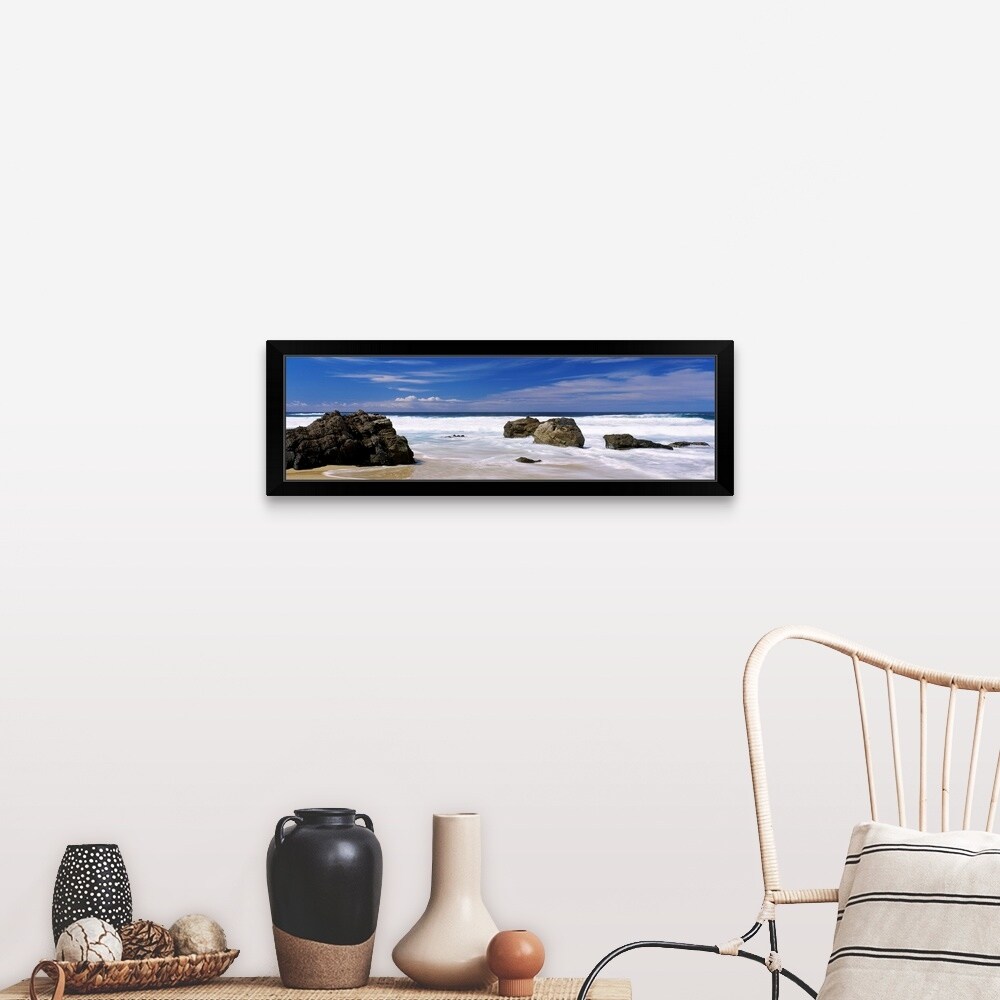 "Rocks on the beach, Big Sur, California" Black Framed Print