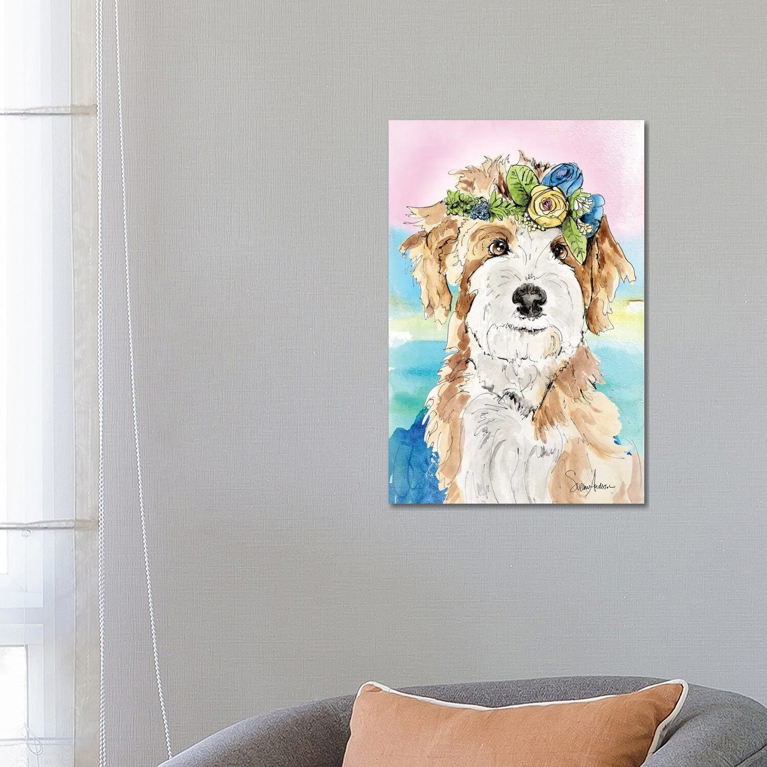 iCanvas "Sheepadoodle Flowers" by Suzanne Anderson Canvas Print