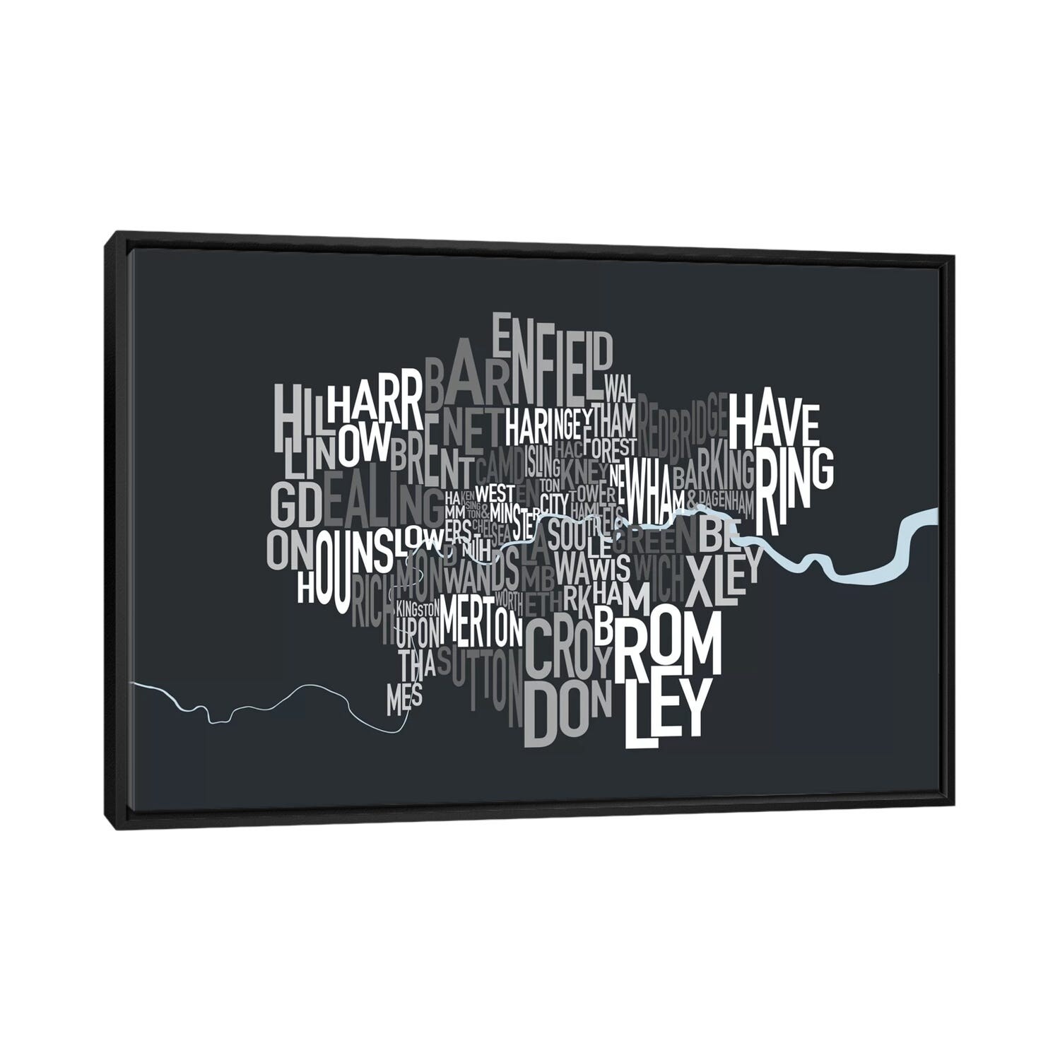 iCanvas "London Text Map" by Michael Tompsett Framed