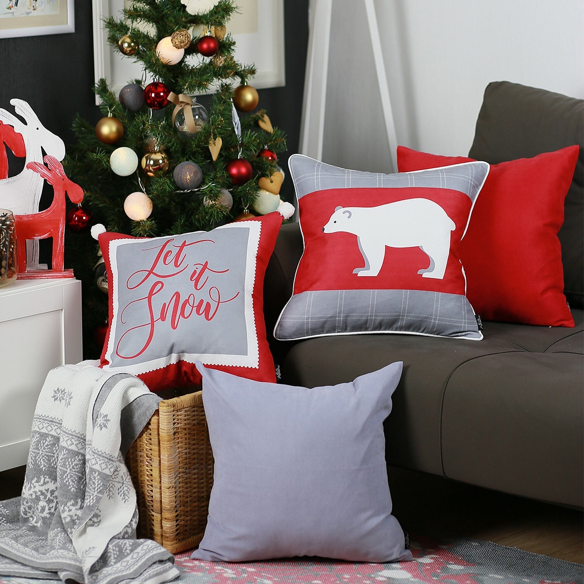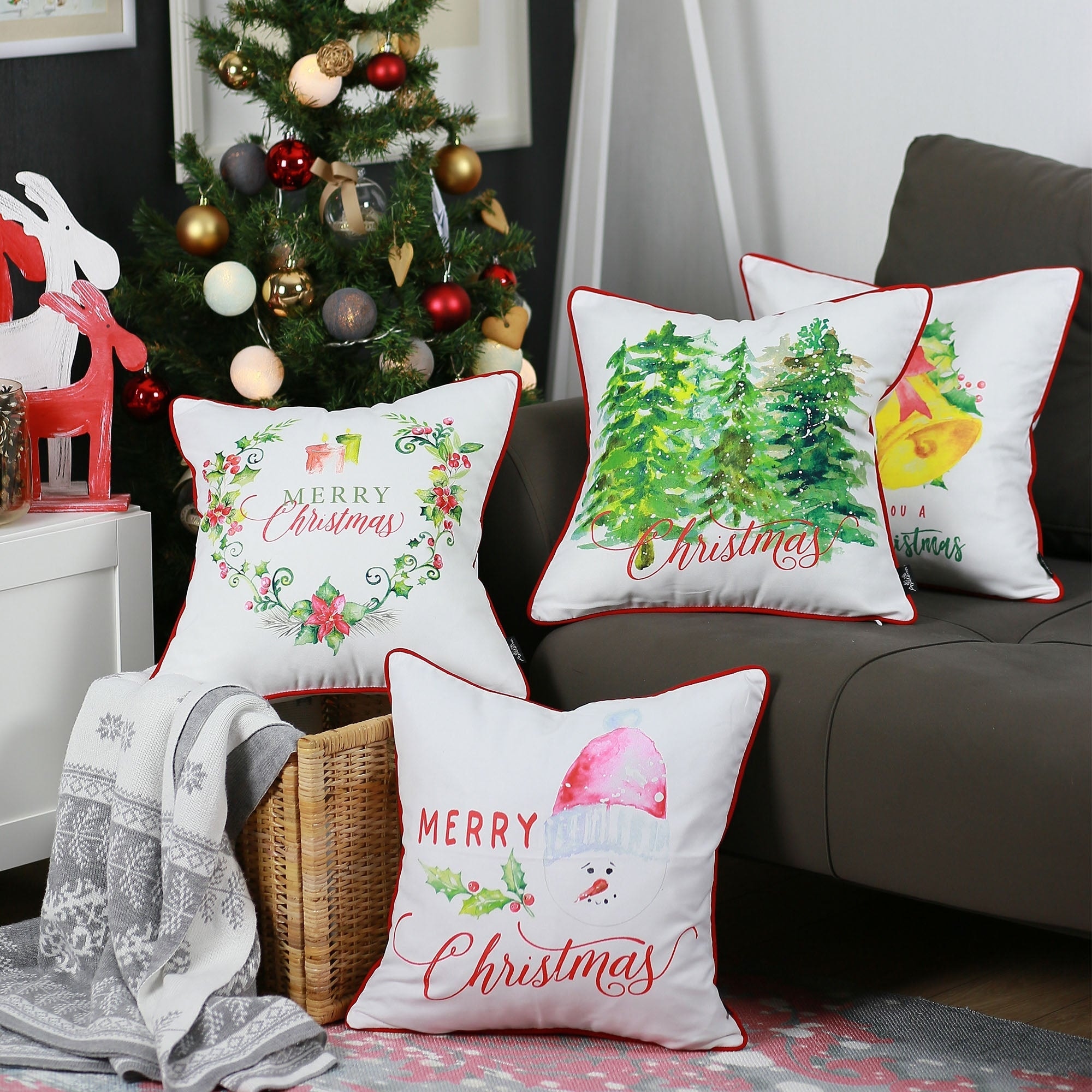 Christmas Themed Decorative Throw Pillow Square Set of 4