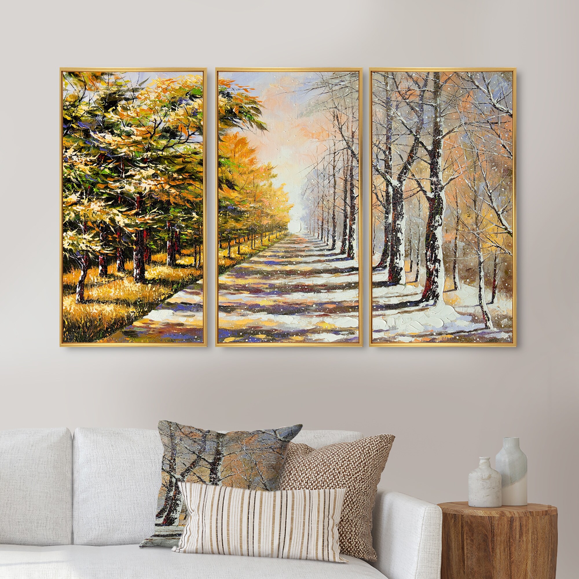 Designart "Allegory On Theme Winter and Autumn" Traditional Framed Canvas Wall Art Print Set of 3 - 4 Colors of Frames