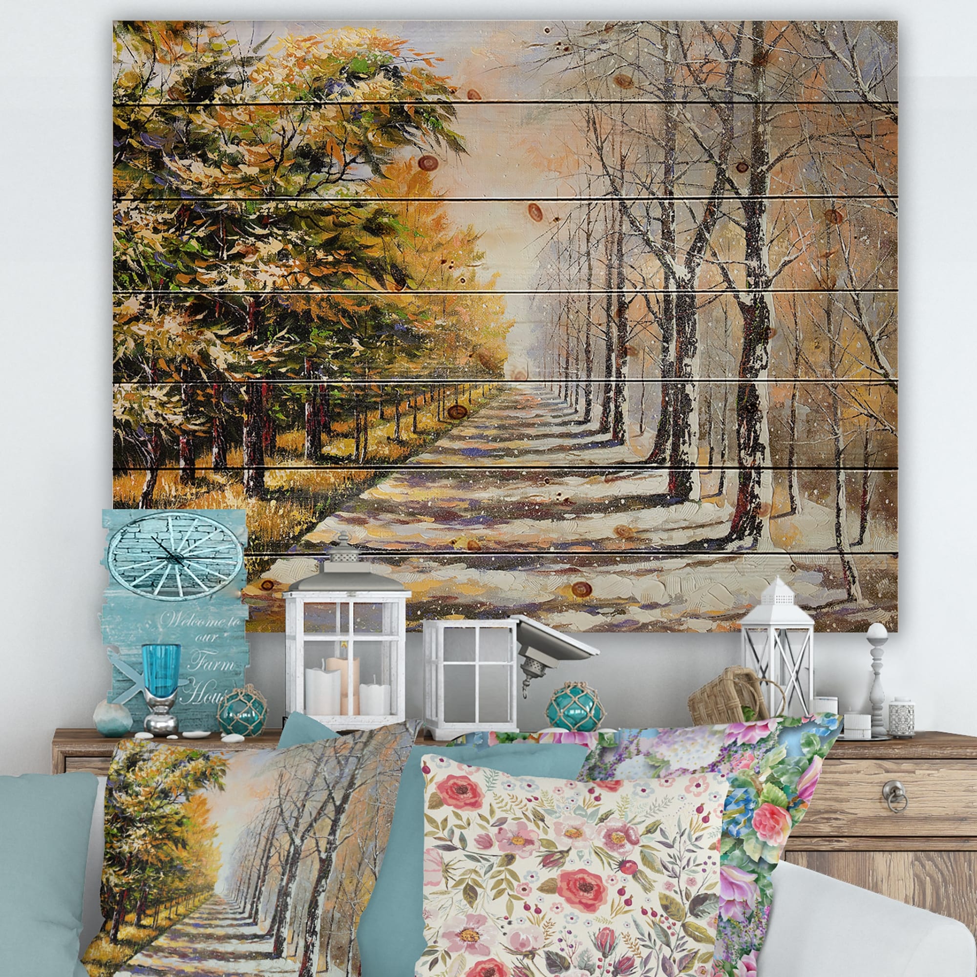 Designart 'Allegory On Theme Winter and Autumn' Traditional Print on Natural Pine Wood