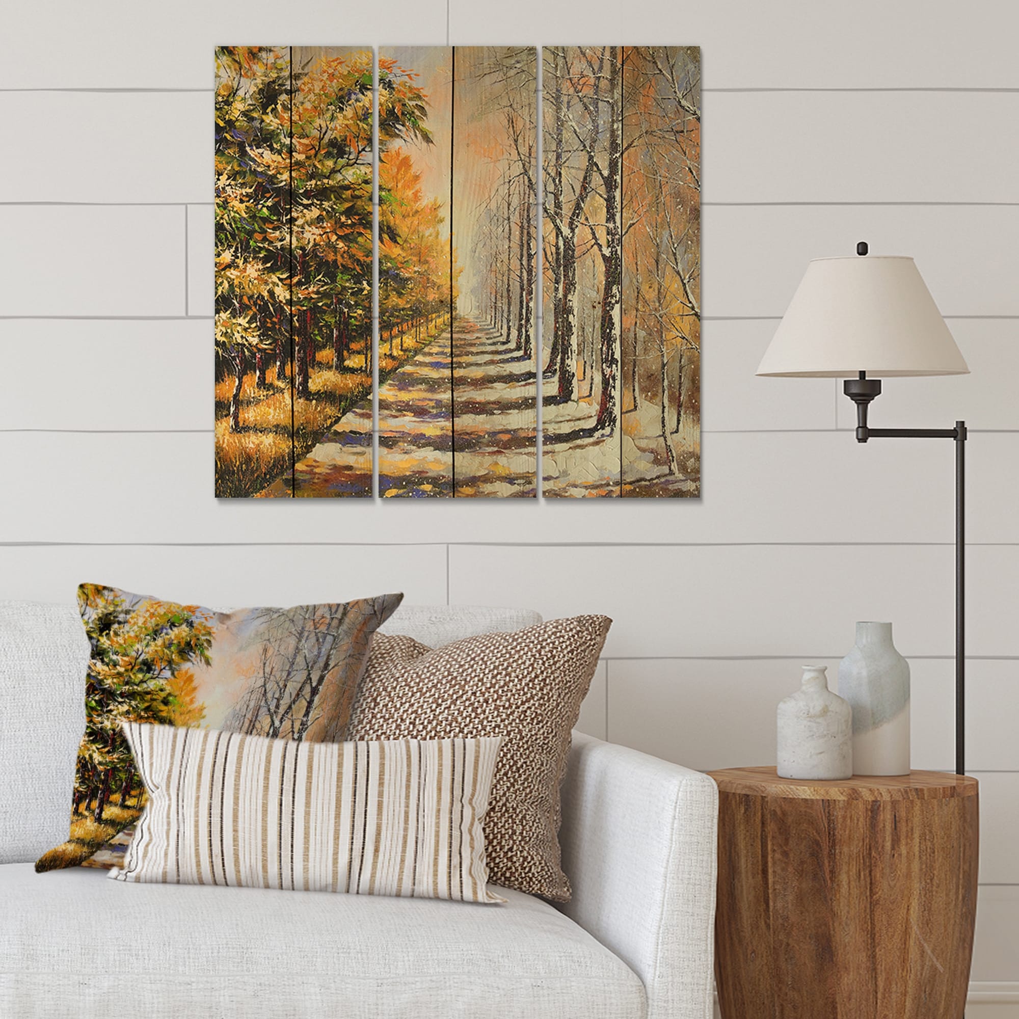 Designart 'Allegory On Theme Winter and Autumn' Traditional Print on Natural Pine Wood - 3 Panels