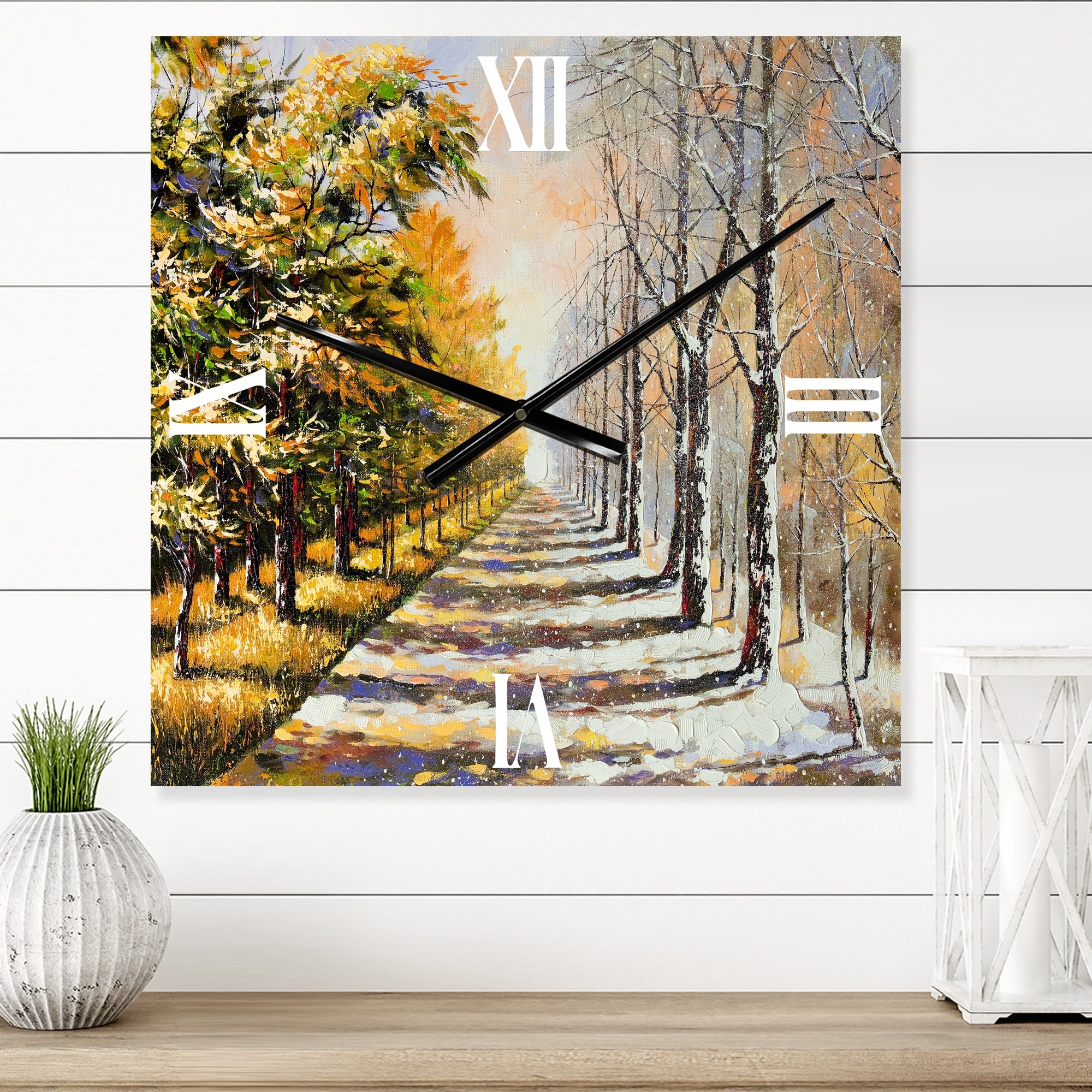 Designart 'Allegory On Theme Winter and Autumn' Traditional Metal Wall Clock