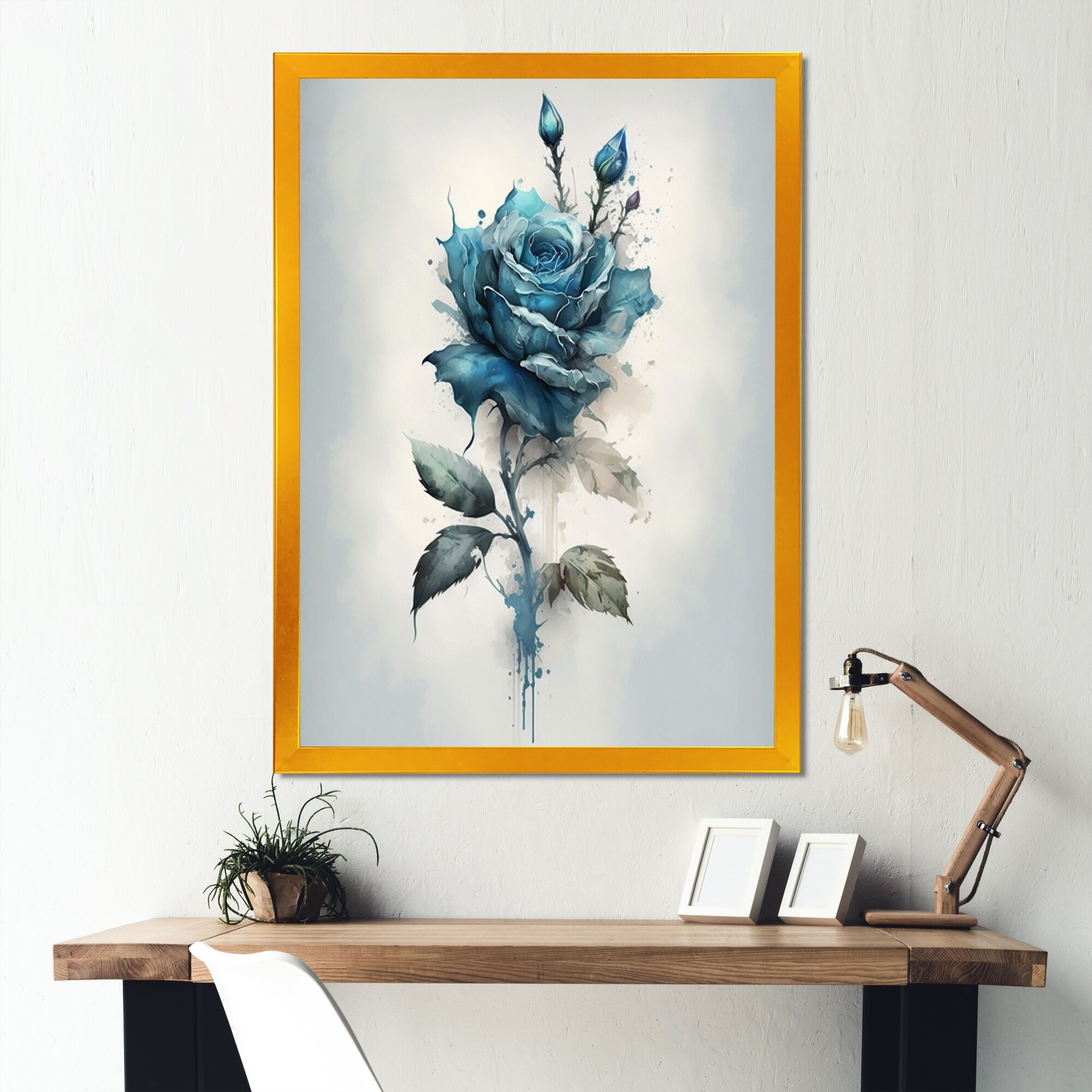 Designart "Blue Rose With Thorns" Floral Rose Framed Art Print