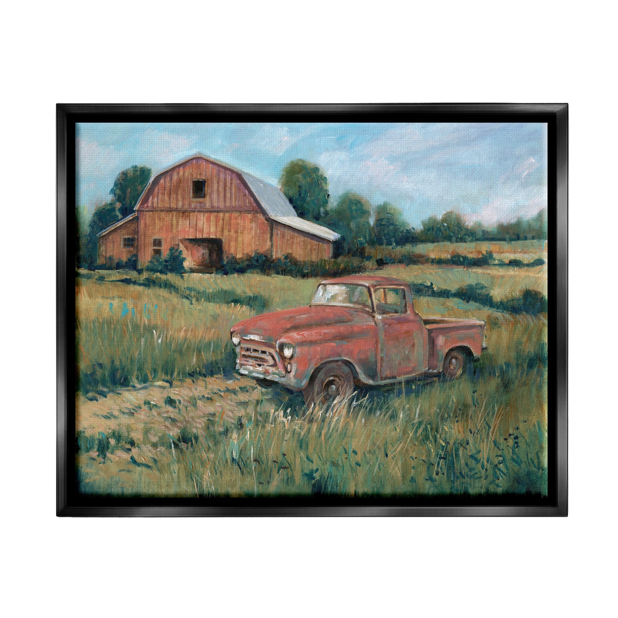 Stupell Red Pickup Truck Rural Barn Farmland Floating Framed Canvas Wall Art, Design by Tim OToole
