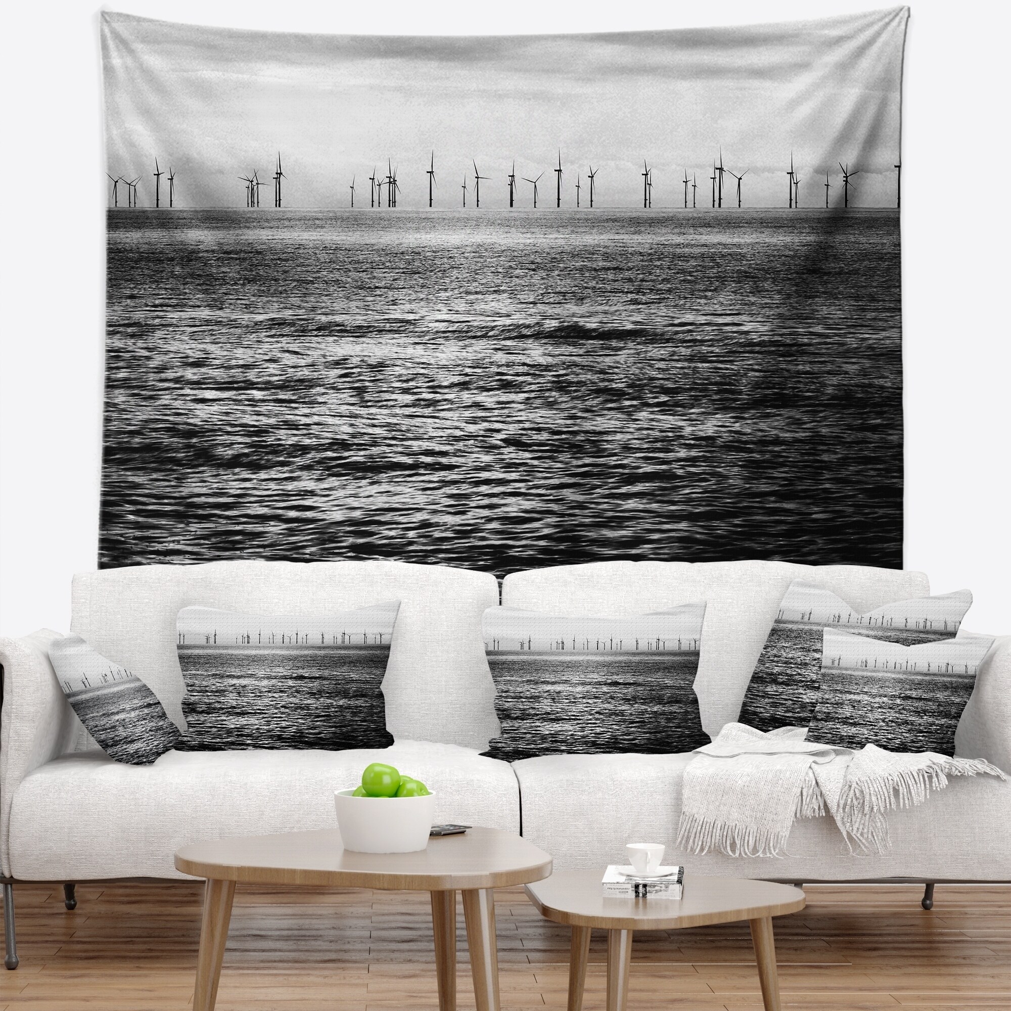 Designart 'Wind Turbines Black and White' Landscape Wall Tapestry