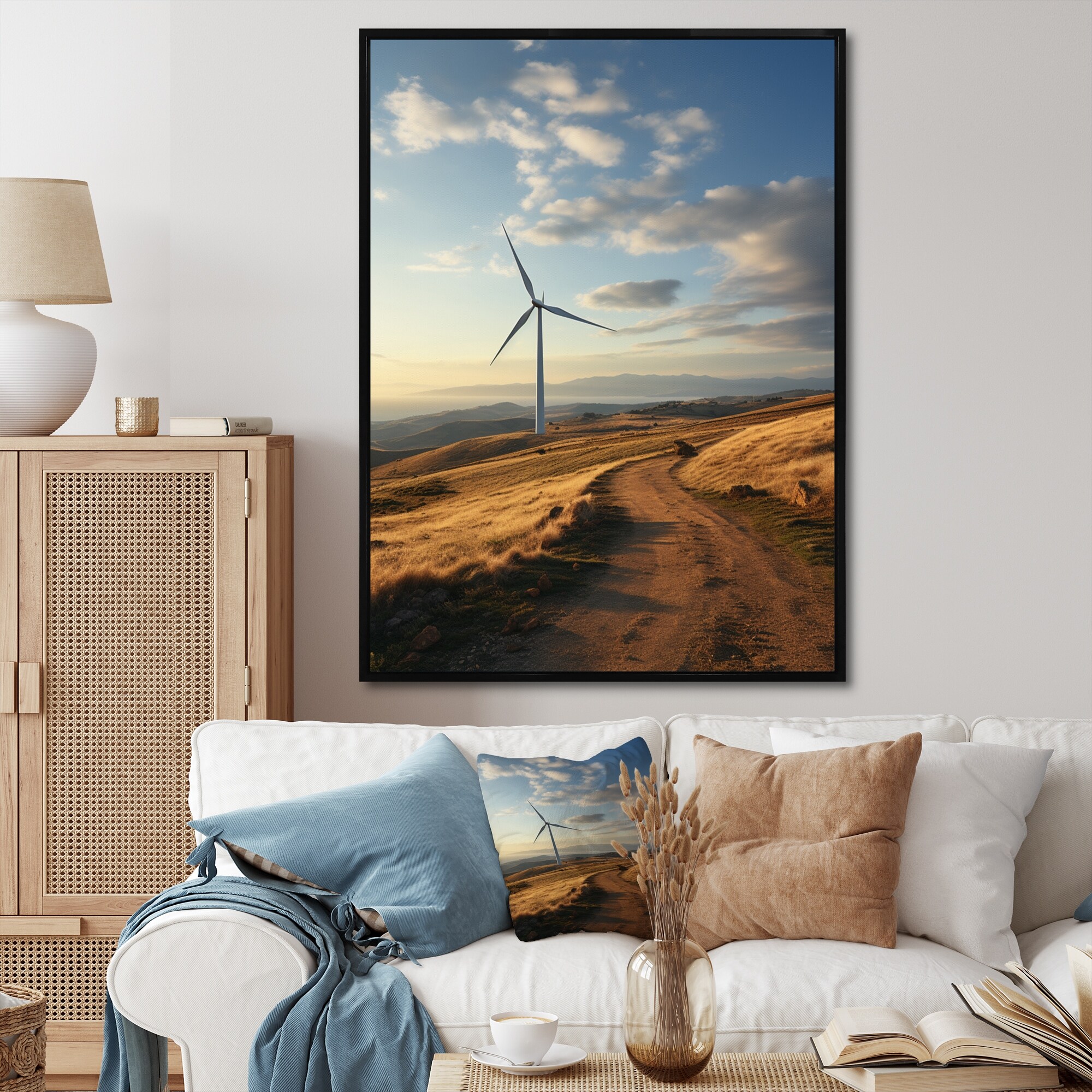 Designart "Mill Wind Majestic Retreat I" Wind Turbines Framed Canvas Prints