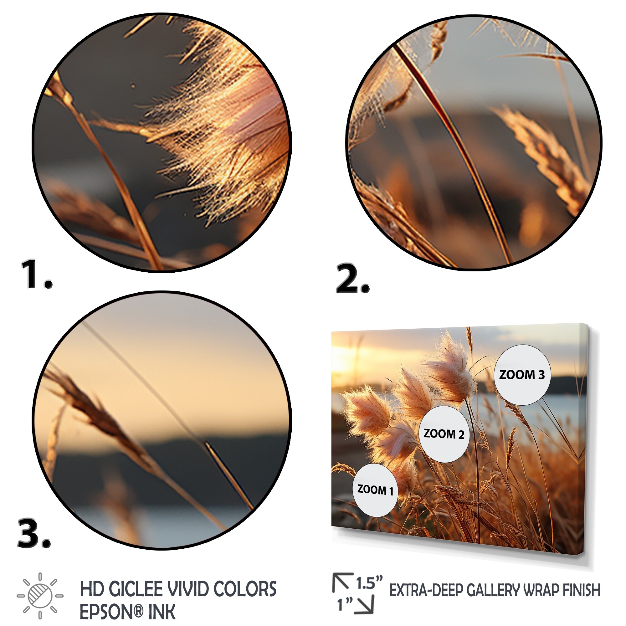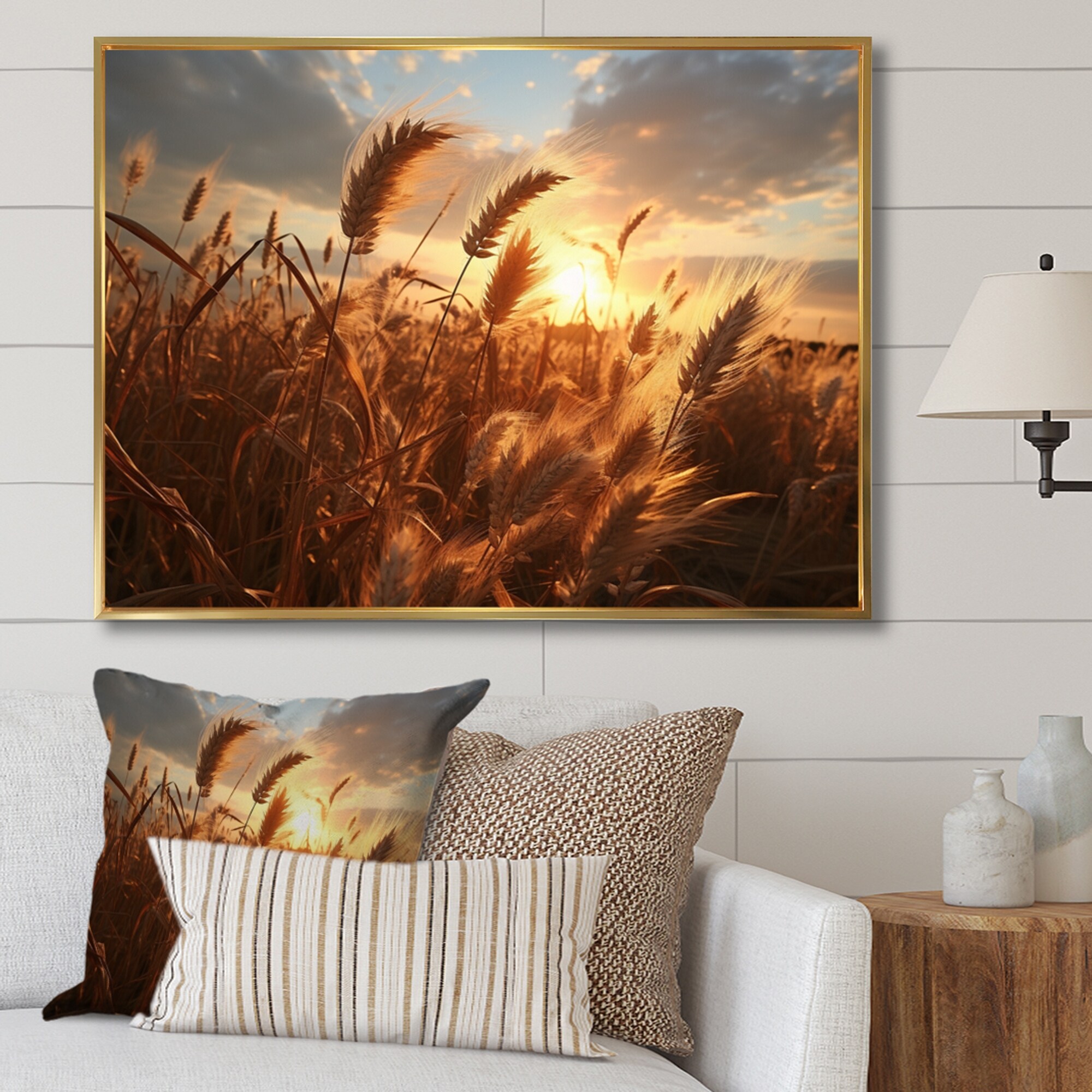 Designart "Wildflowers In Sunset Tranquil Harvest I" Wind Turbines Framed Canvas Art Print