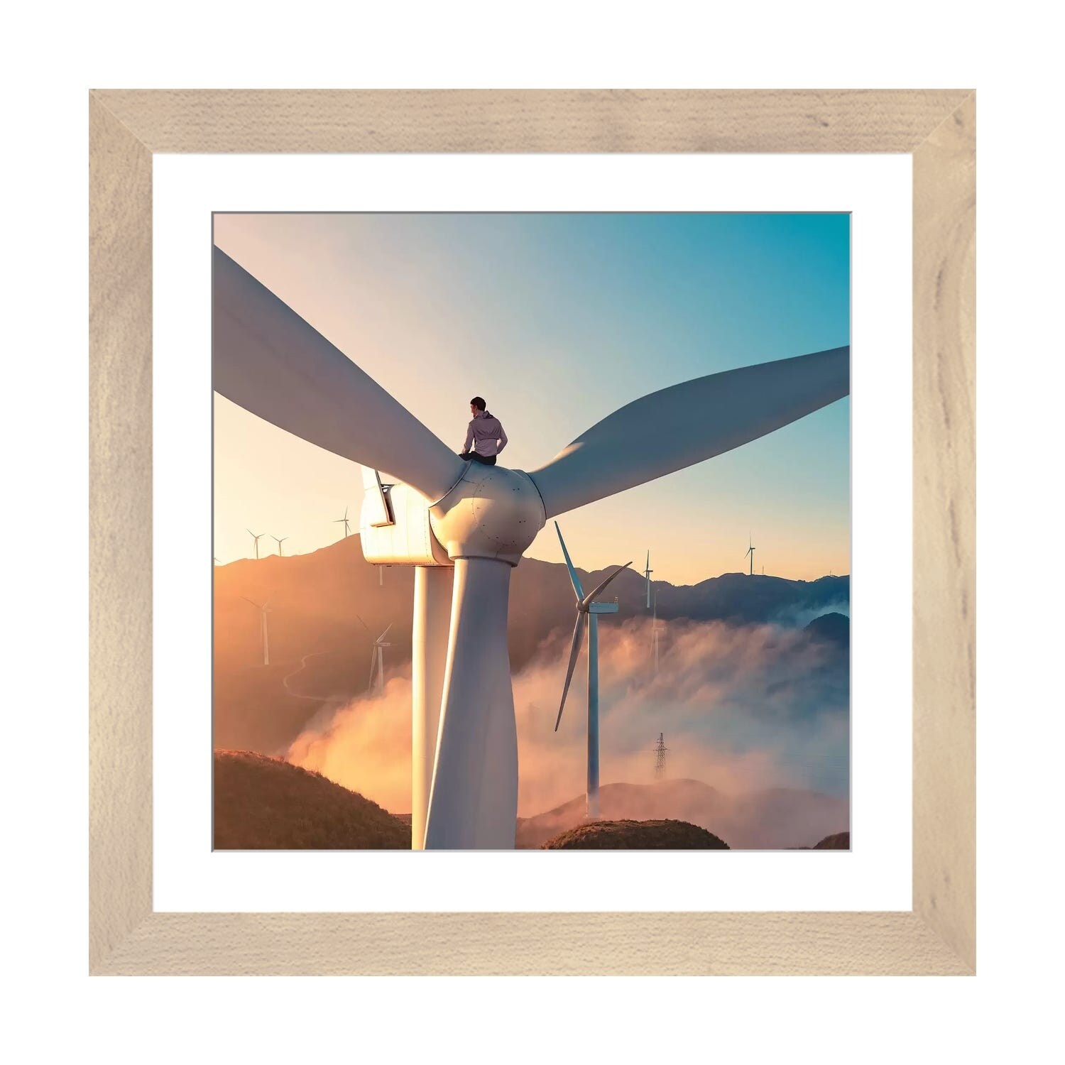 "Wind Turbine in field" Black Float Frame Canvas Art