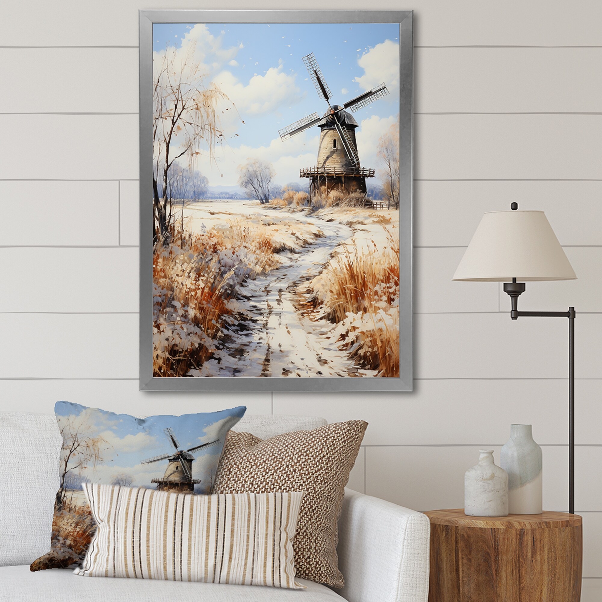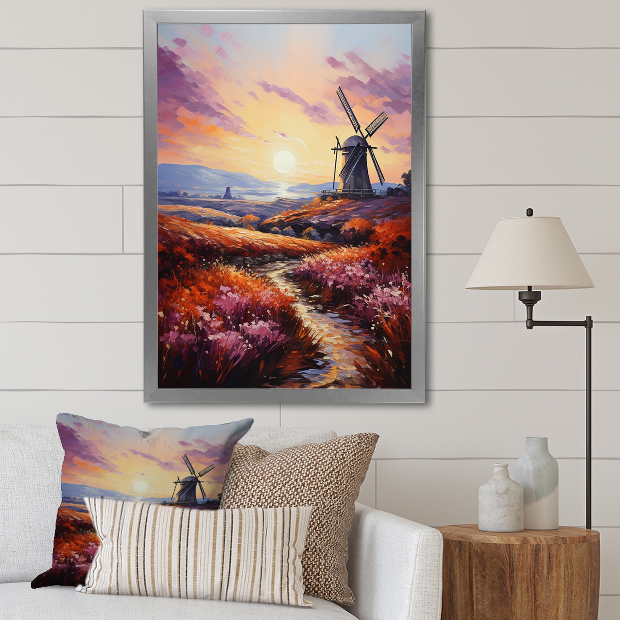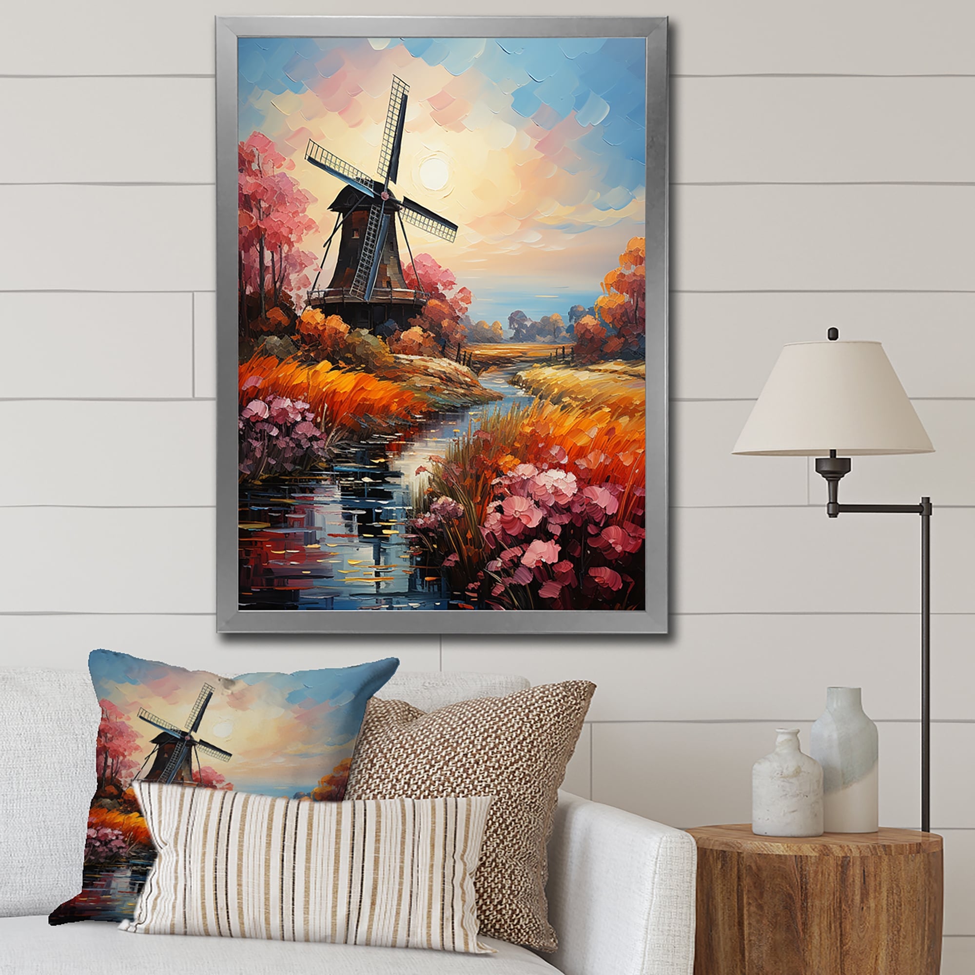 Designart "Mill Wind Floral Melody" Wind Turbines Framed Wall Art Living Room