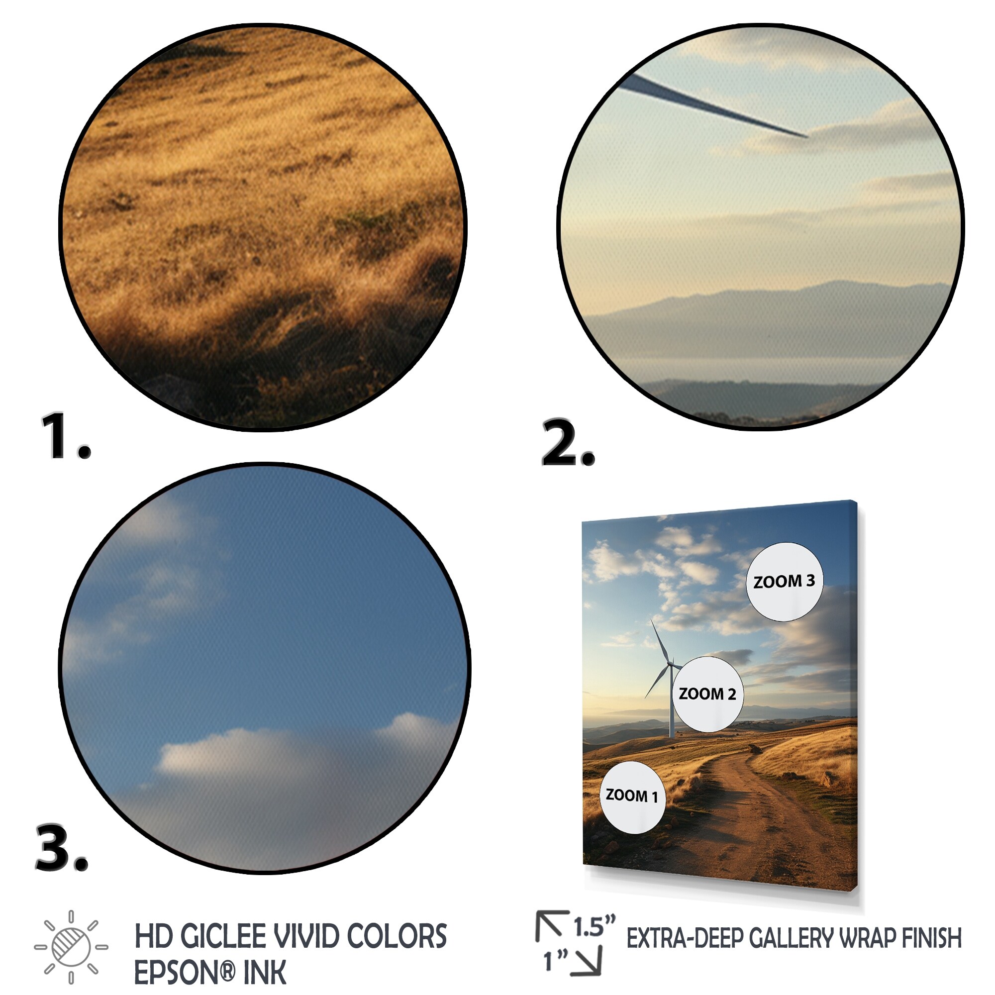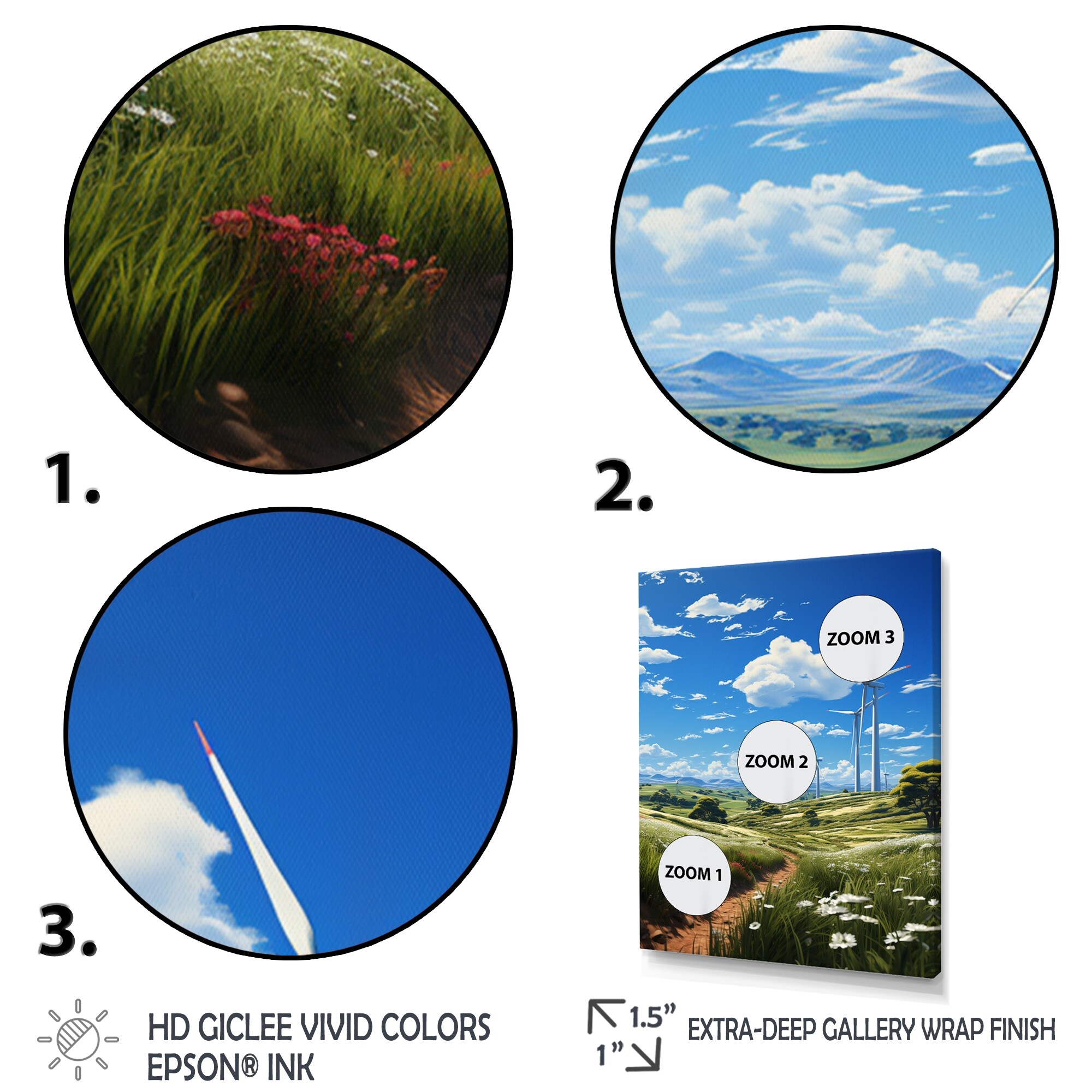 Designart "Mill Wind Whirling Fields" Wind Turbines Canvas Wall Art