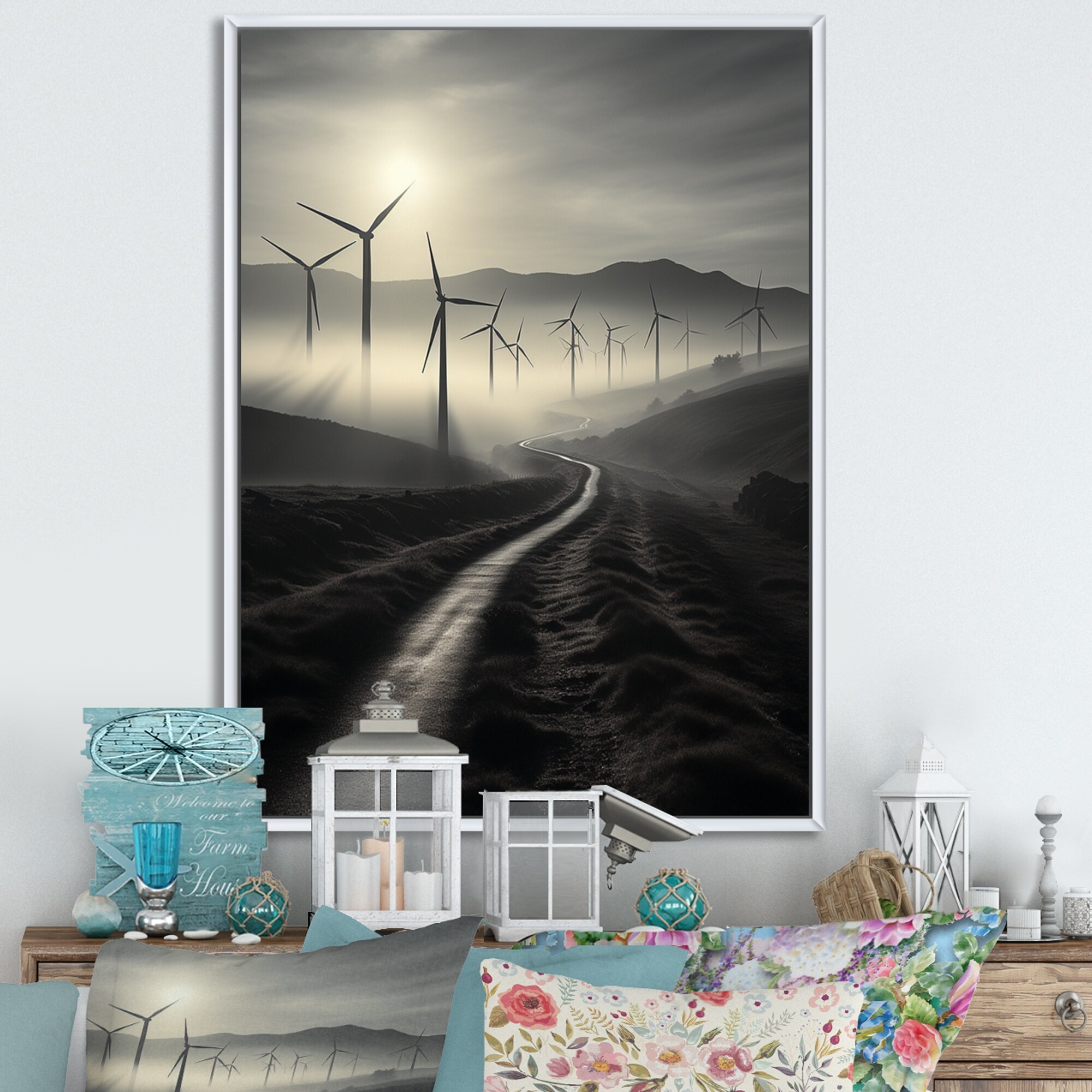Designart "Wind Turbines Ethereal Winds" Wind Turbines Framed Wall Art Living Room