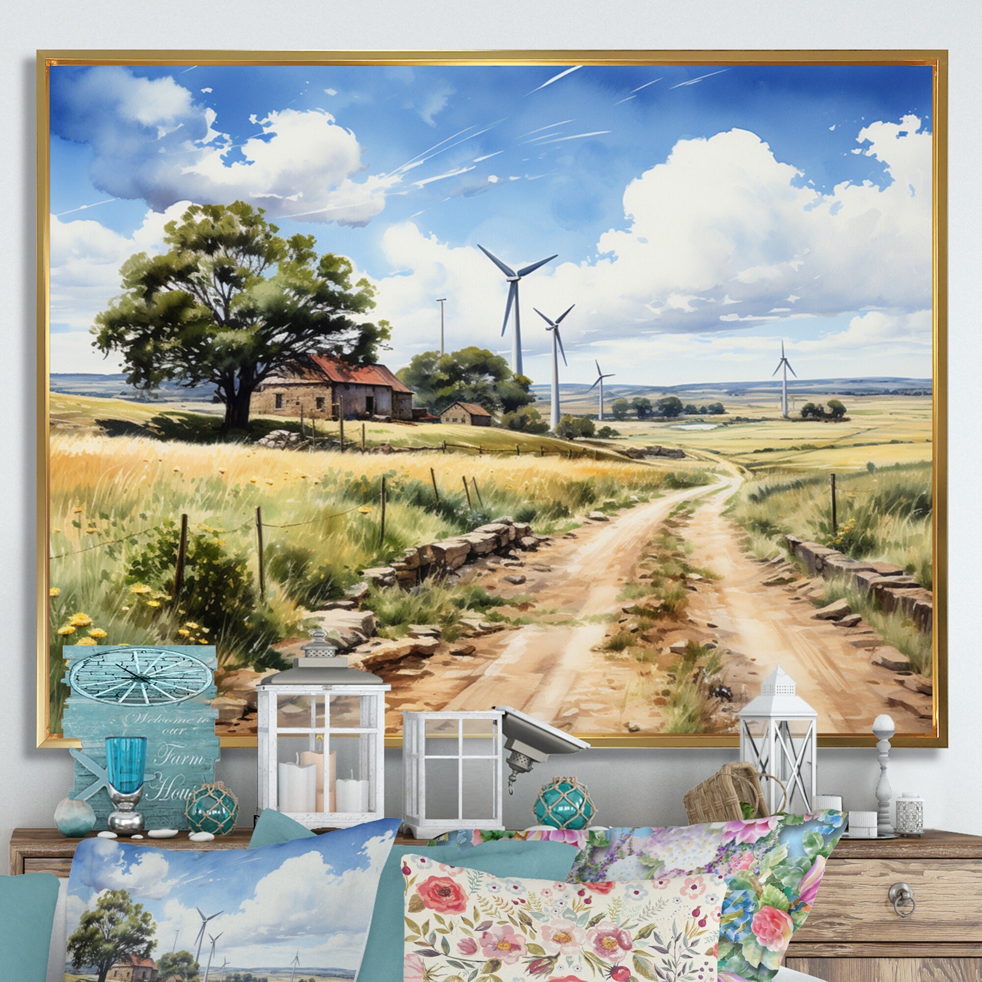 Designart "Wind Turbines Country Charm II" Wind Turbines Framed Wall Art Prints