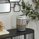 Contemporary Decorative Square Table Flower Vase with Gray Striped Design