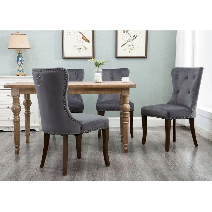 Set of 2 Victorian Dining Chair, Button Tufted Side Chair Upholstered Accent Chair, Nailhead Trim, Chair Ring Pull
