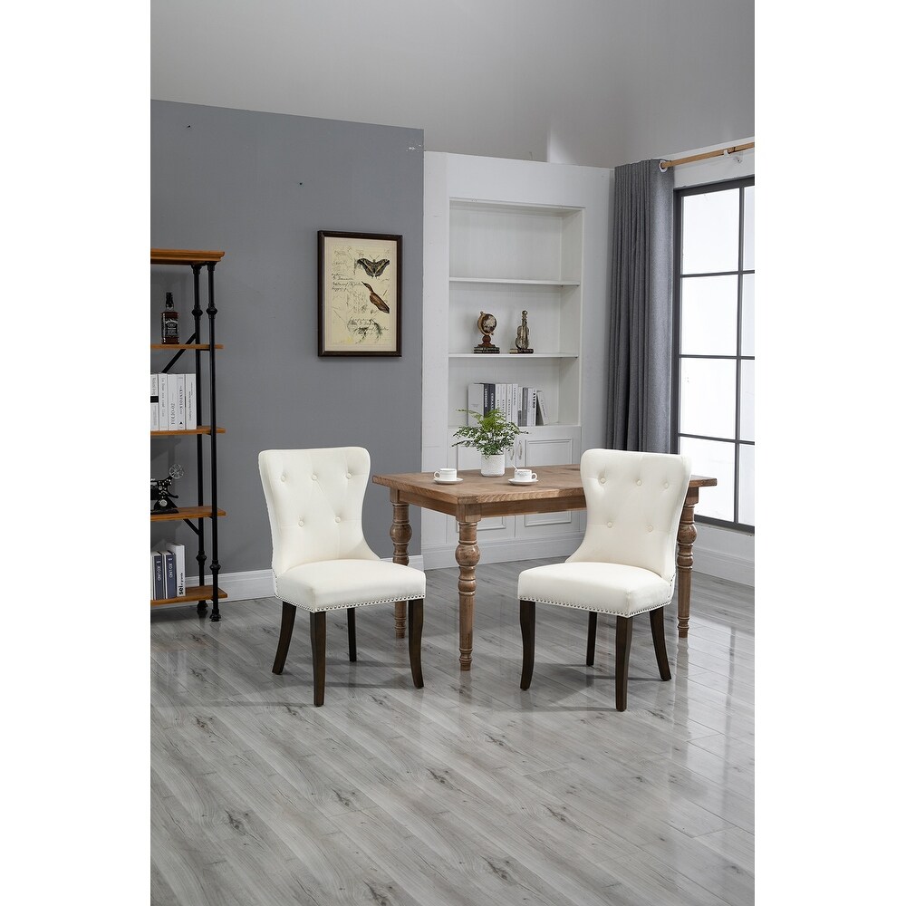 Solid Wood Tufted Upholstered Dining Chairs for Dining Living Room Victorian Chairs with Nailhead Decoration (Set of 2), Cream