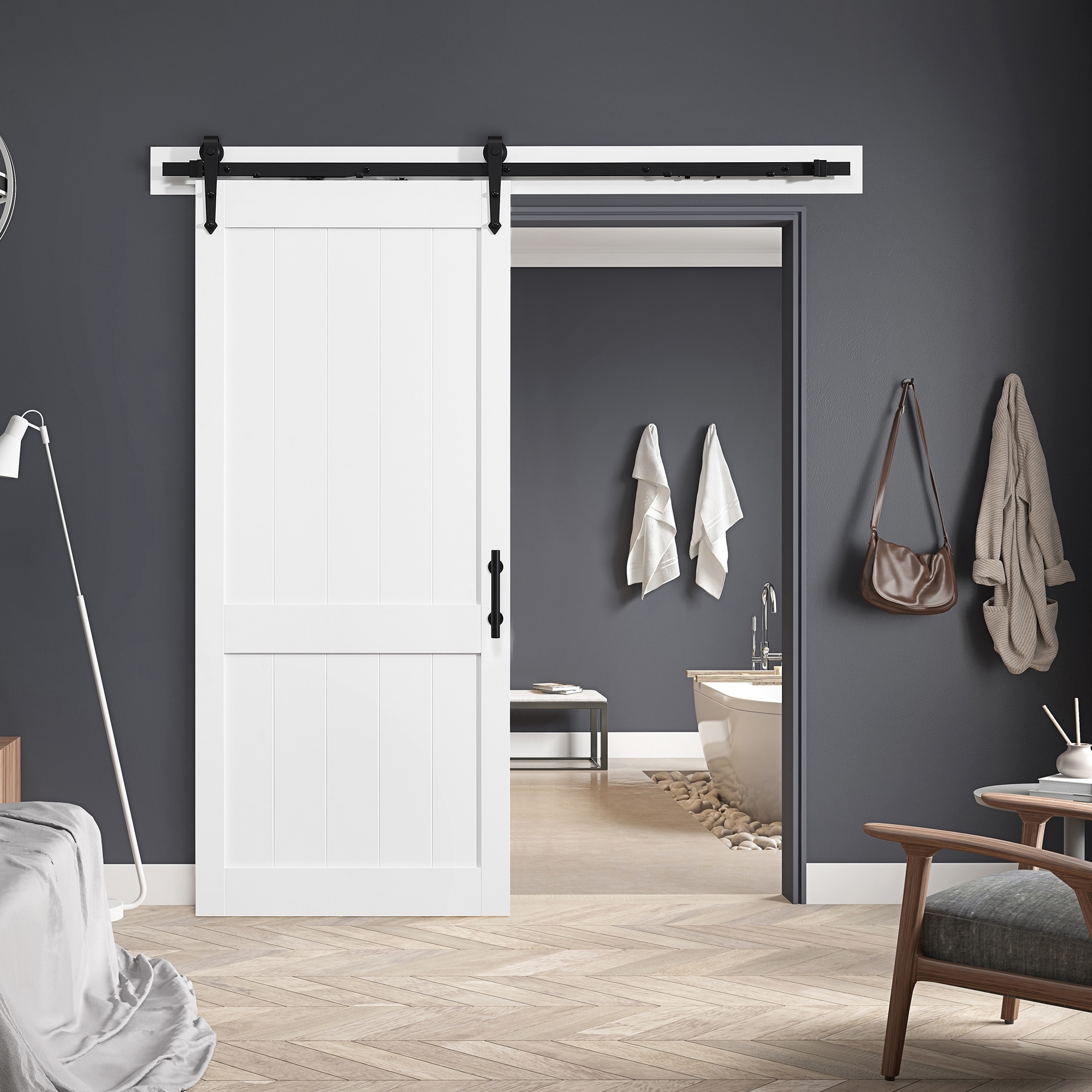 OVE Decors Dorian Barn Door Kit in Textured White with Included Victorian Rollers in Black