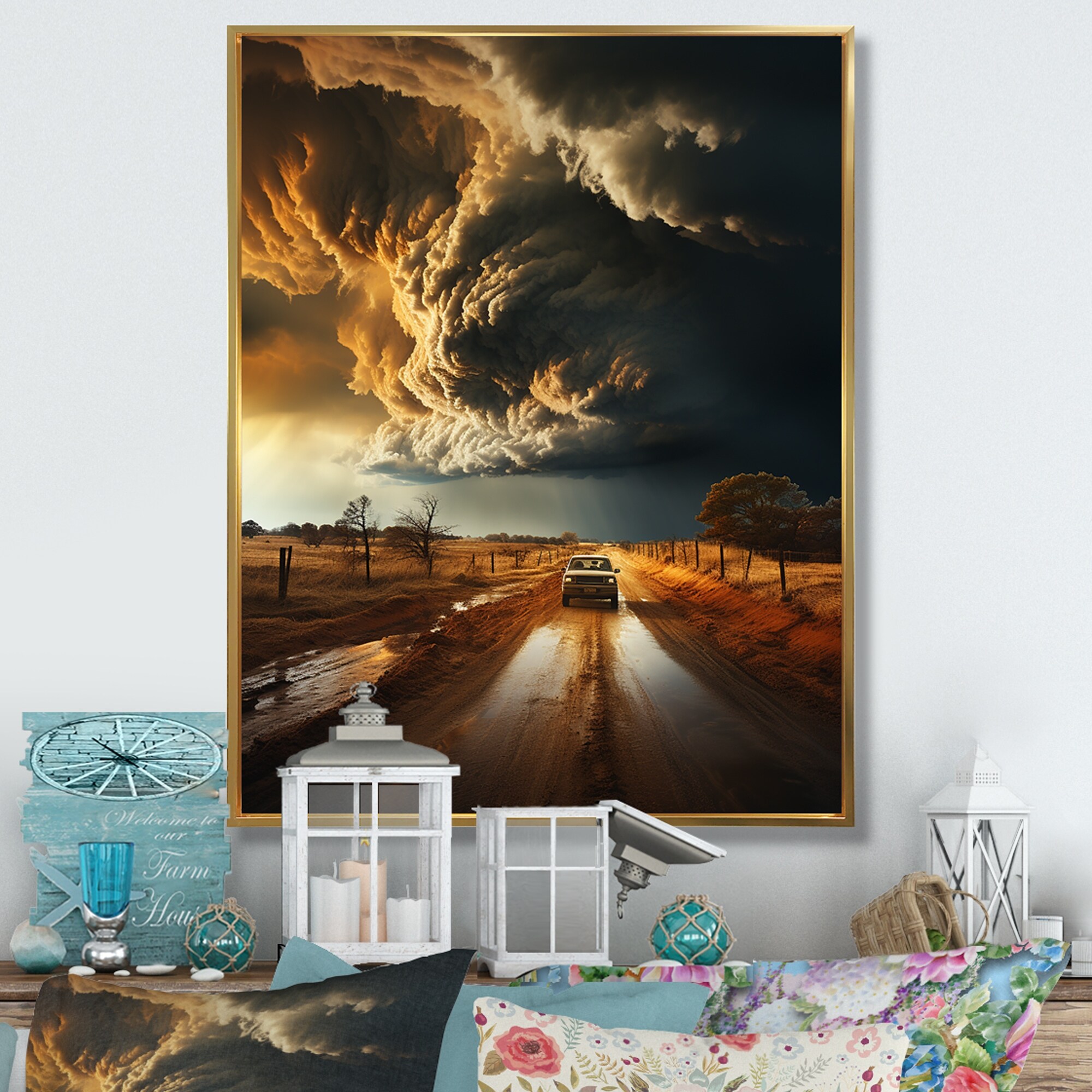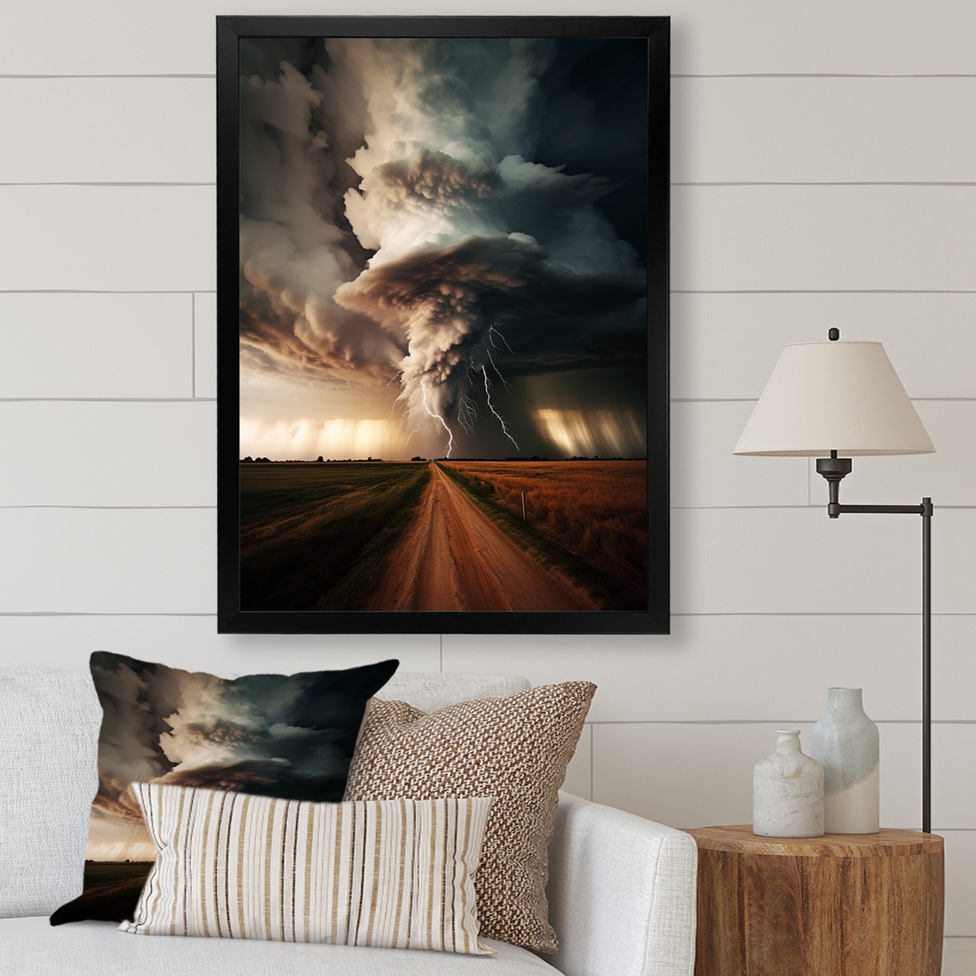 Designart "Storm Raging Vortex I" Storms Framed Wall Art Living Room