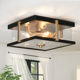Modern 3-Light Black Gold Square Glass Flush Mount Ceiling Foyer Light - 12" L x 12" W x 5.5" H