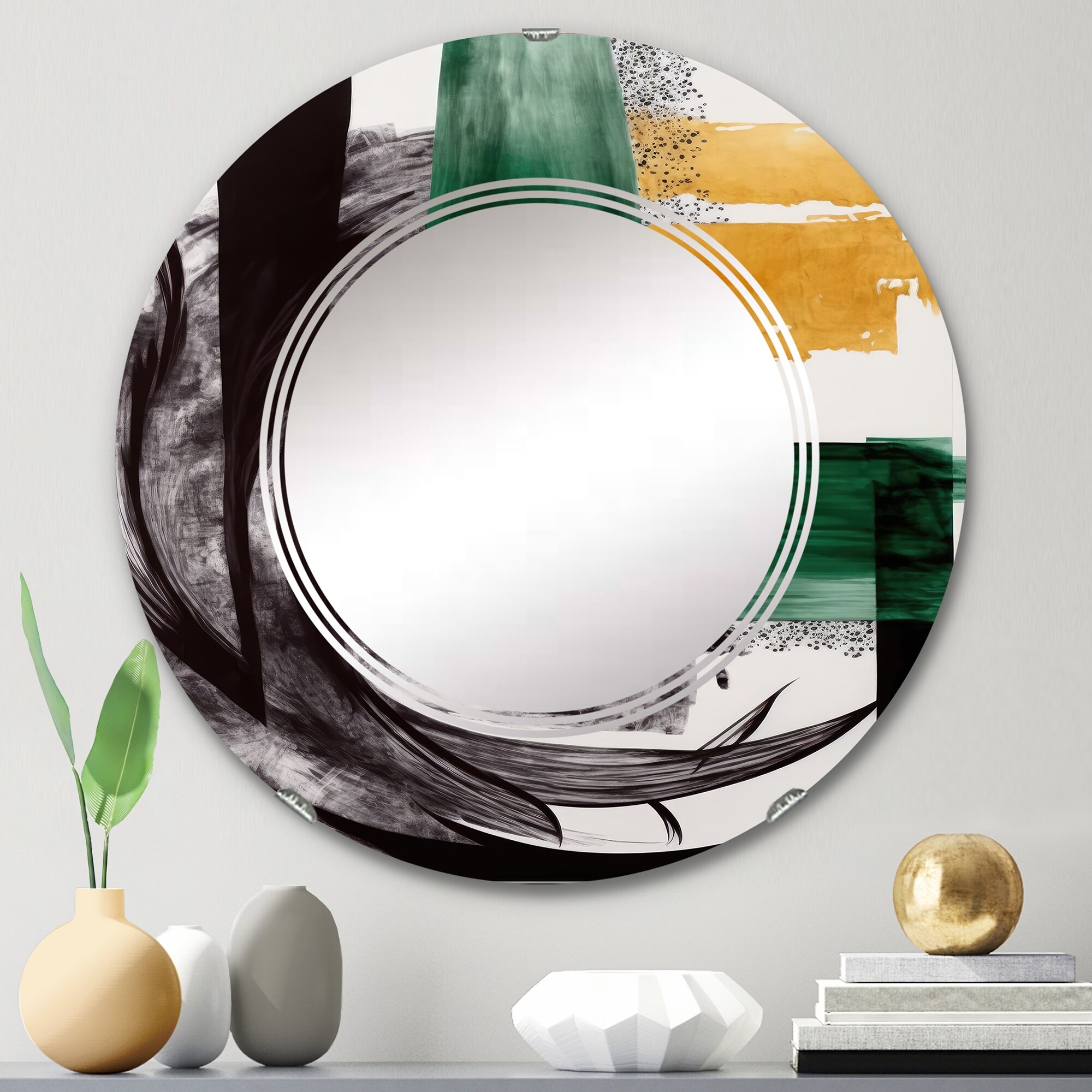 Designart 'Modern Green Art Deco VI' Printed Modern Transitional Wall Mirror