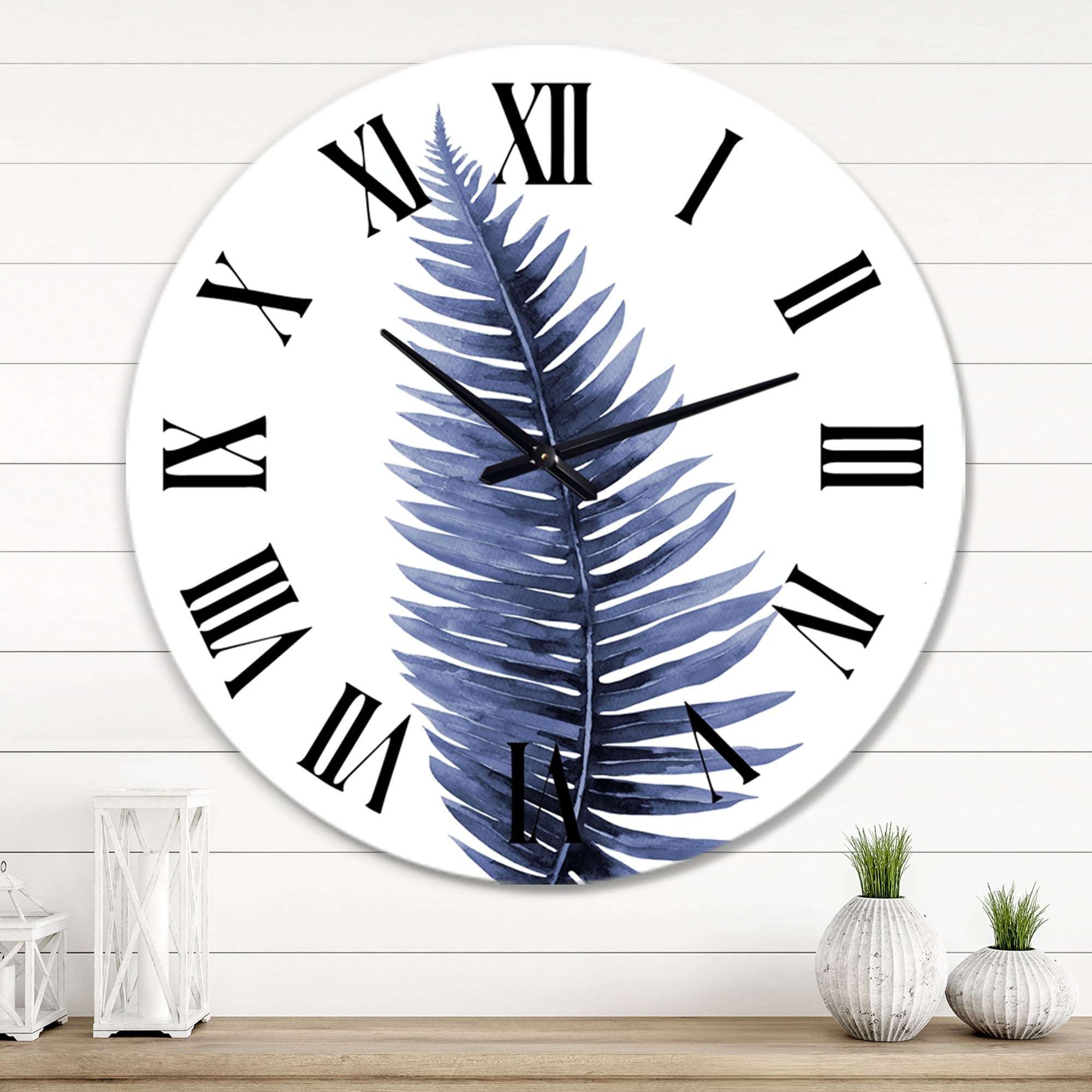 Designart 'Tropical Blue Watercolour Leaves II' Bohemian & Eclectic wall clock