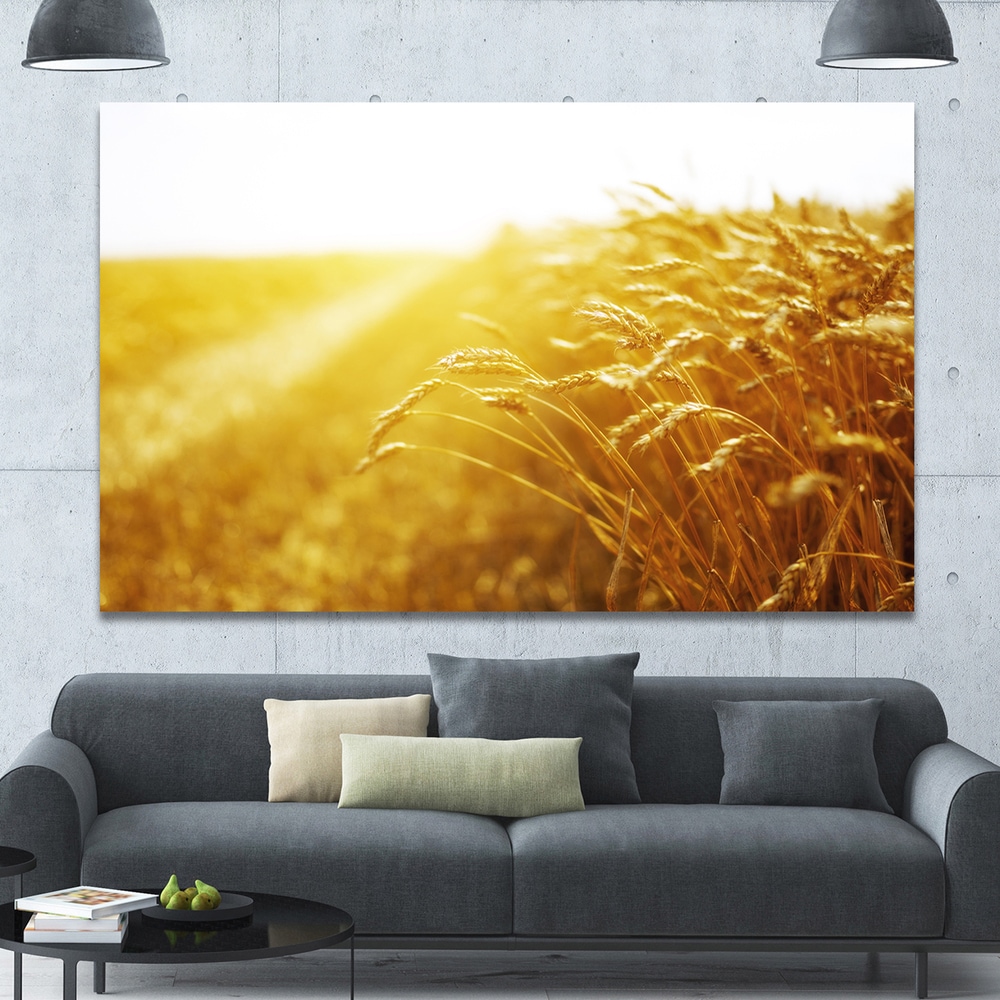 Designart "Countryside Wheat Field of Gold III" Countryside Framed Wall Art Living Room