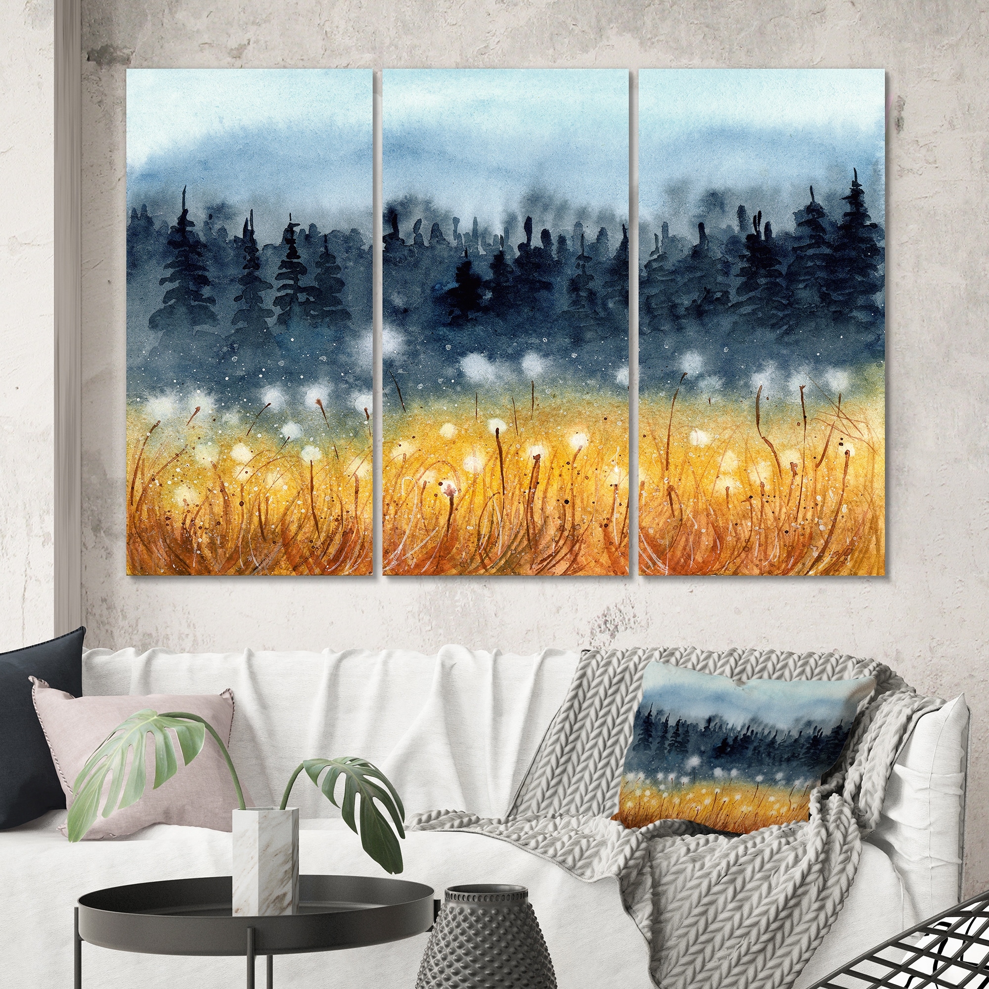 Designart "Landscape With A Field of Yellow Wheat" Traditional Framed Art Set of 3 - 4 Colors of Frames