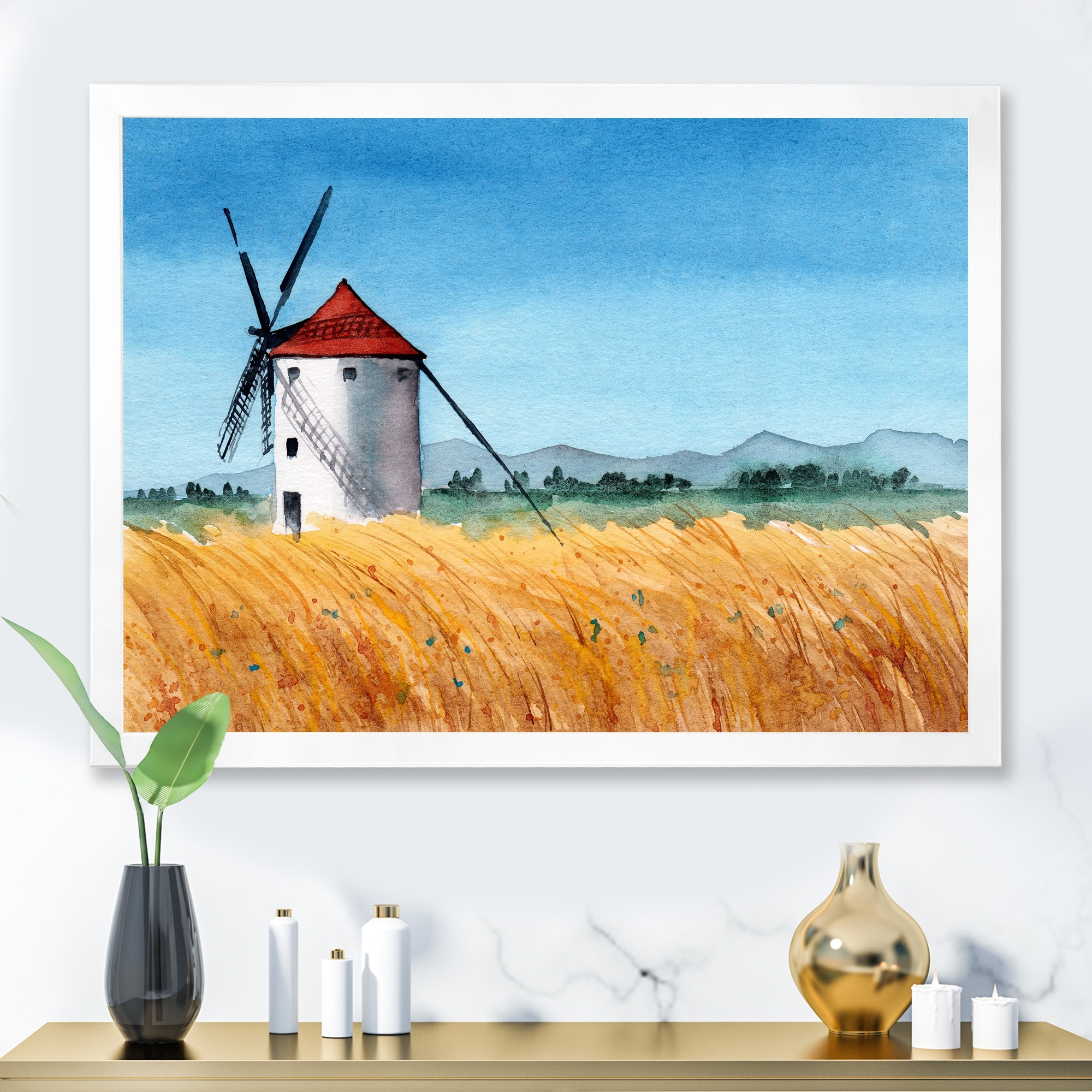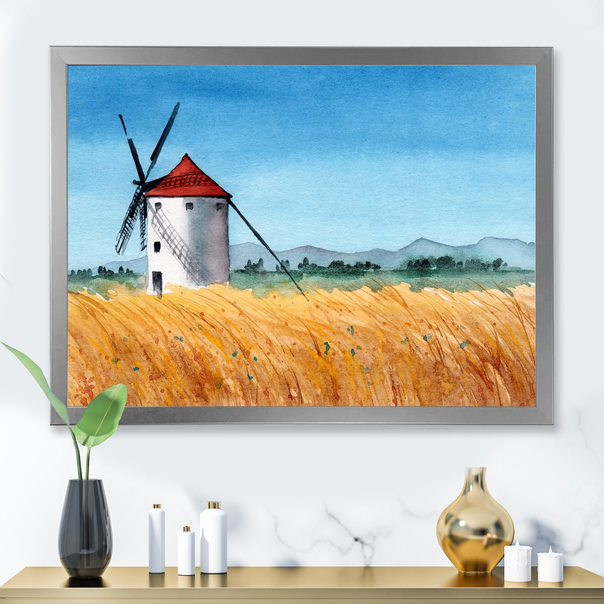 Designart "Landscape With A Windmill Standing in Wheat Field" Country Framed Art Print
