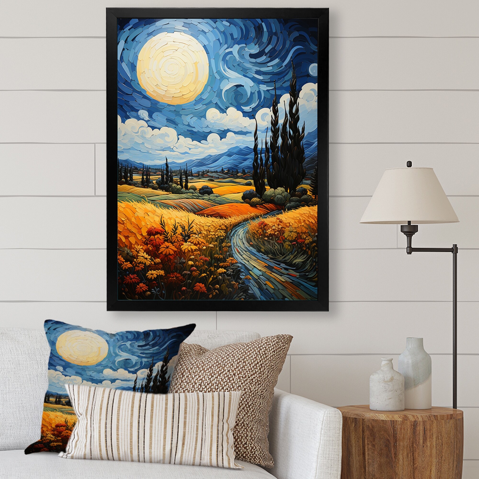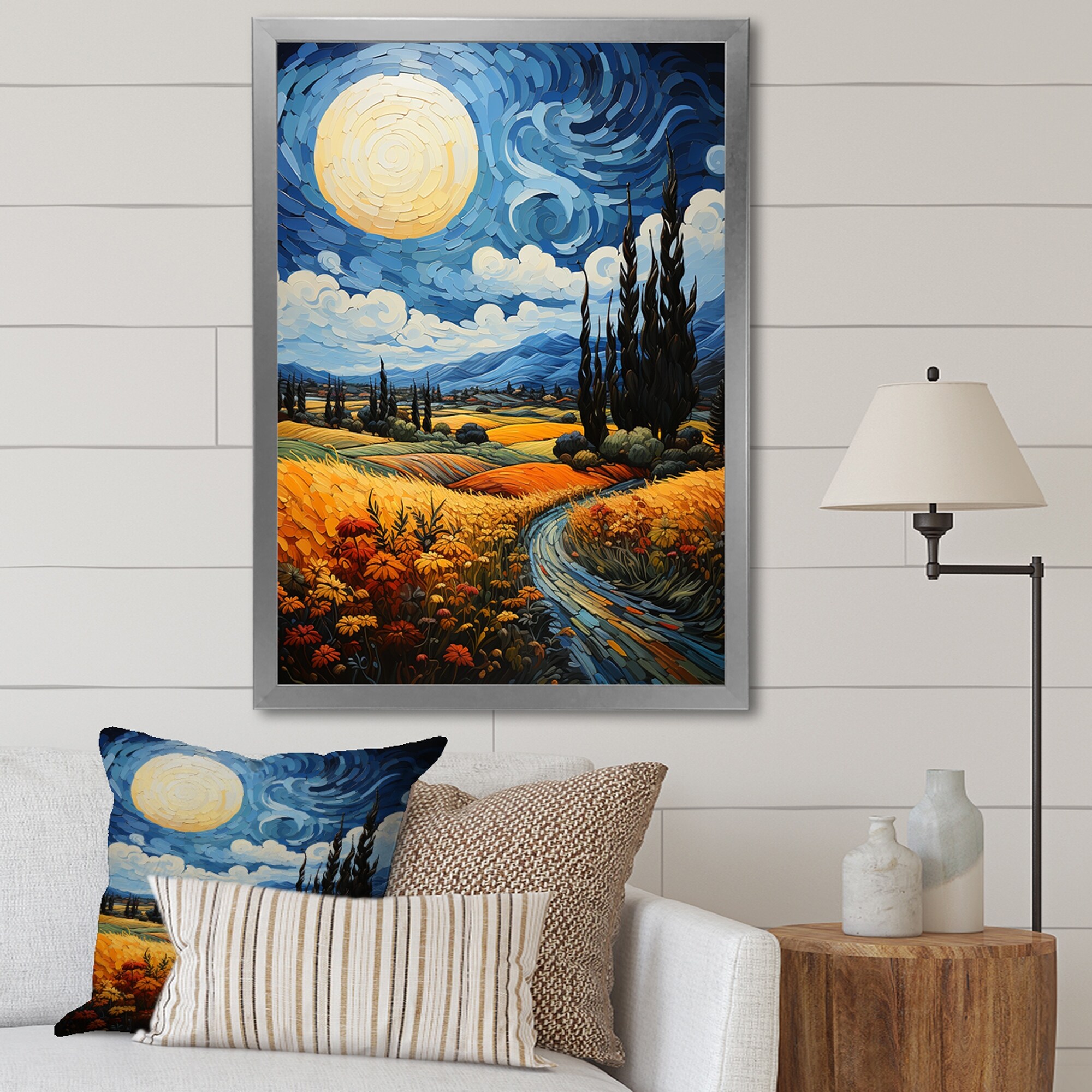 Designart "Vangogh Harvest Time in the Wheat Fields III" Vangogh Framed Wall Decor