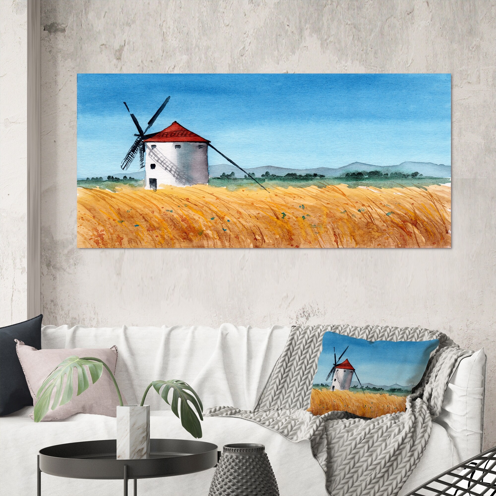 Designart "Landscape With A Windmill Standing in Wheat Field" Country Canvas Wall Art Print