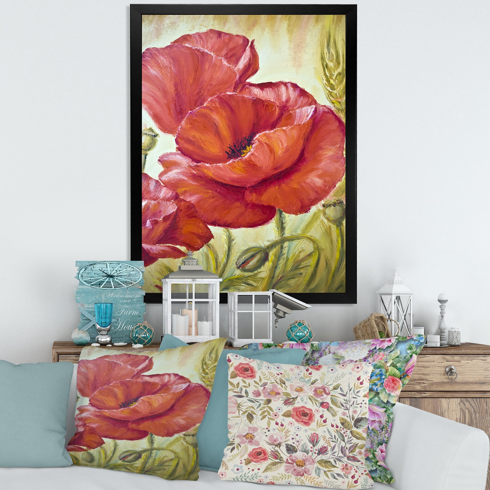 Designart "Blossoming Poppies in Wheat Fields I" Traditional Framed Art Print