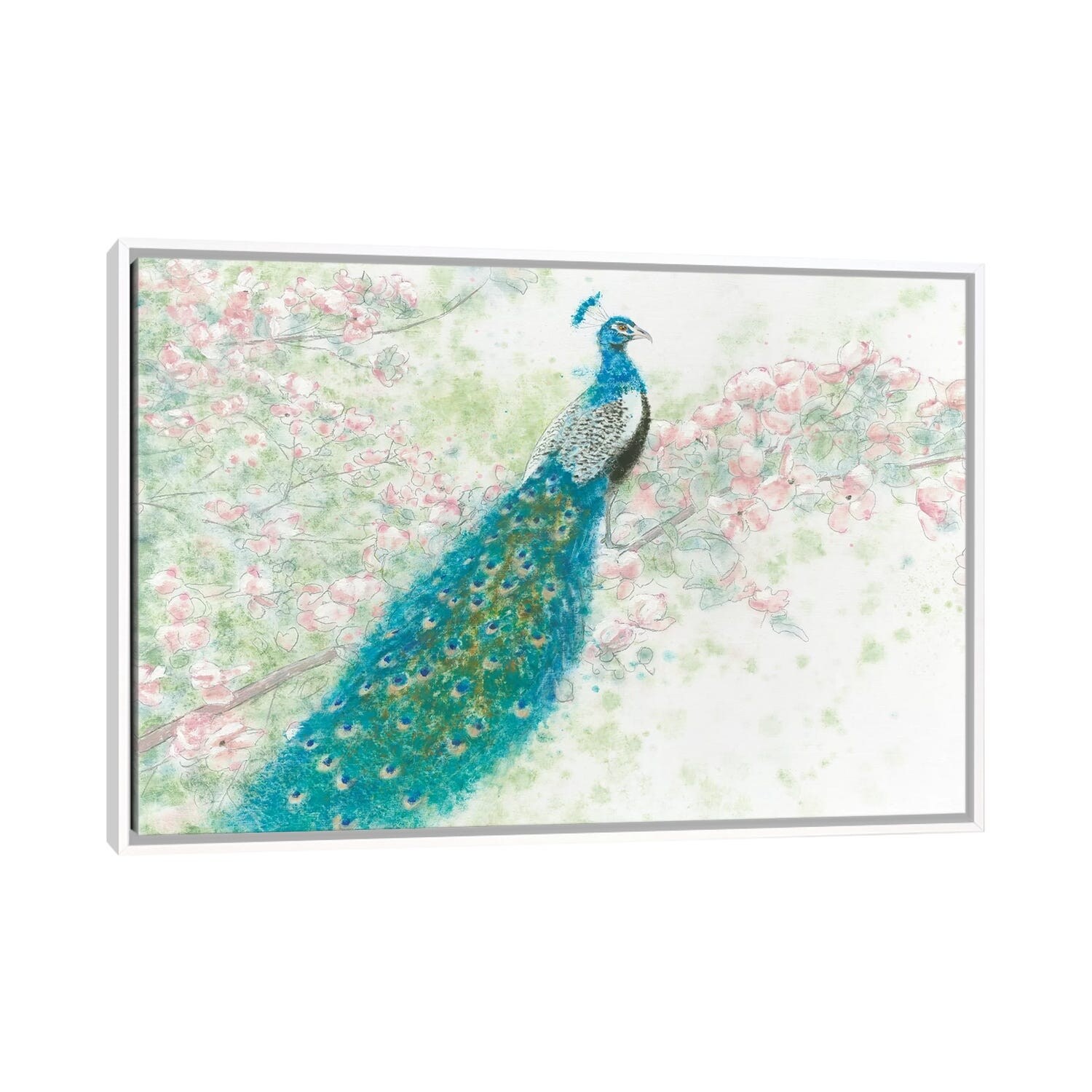 iCanvas "Spring Peacock I Pink Flowers" by James Wiens Framed