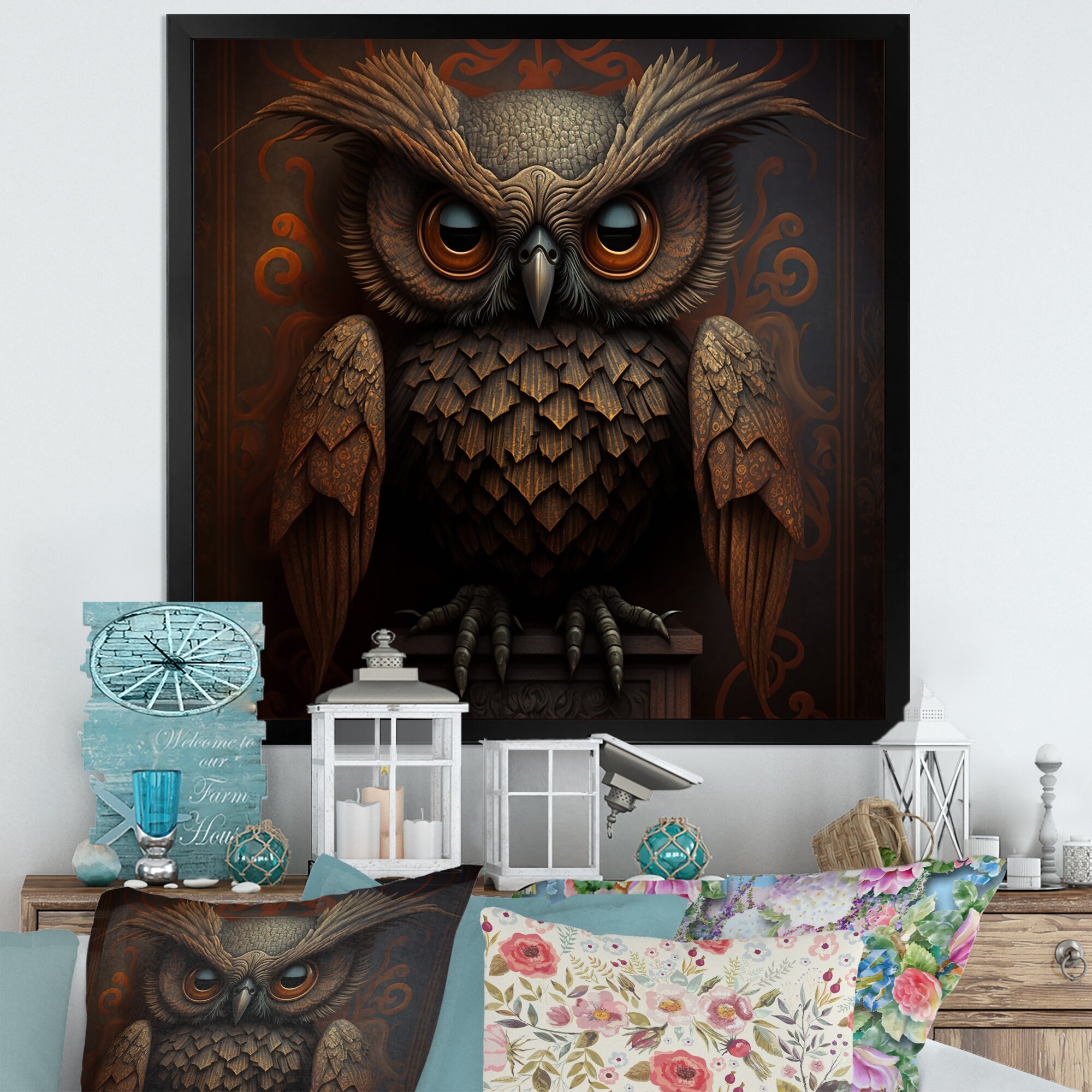 Designart "Wise Owl in Earth Tones I" Animals Owl Framed Art Print