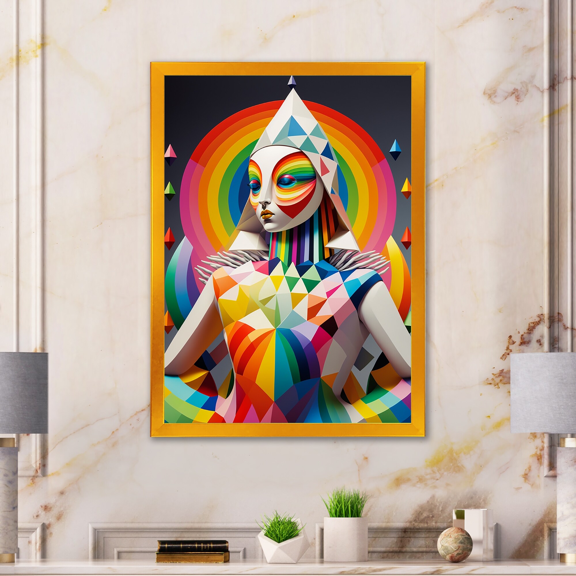 Designart "Cubic Woman Portrait V" Contemporary Glam Framed Art Print