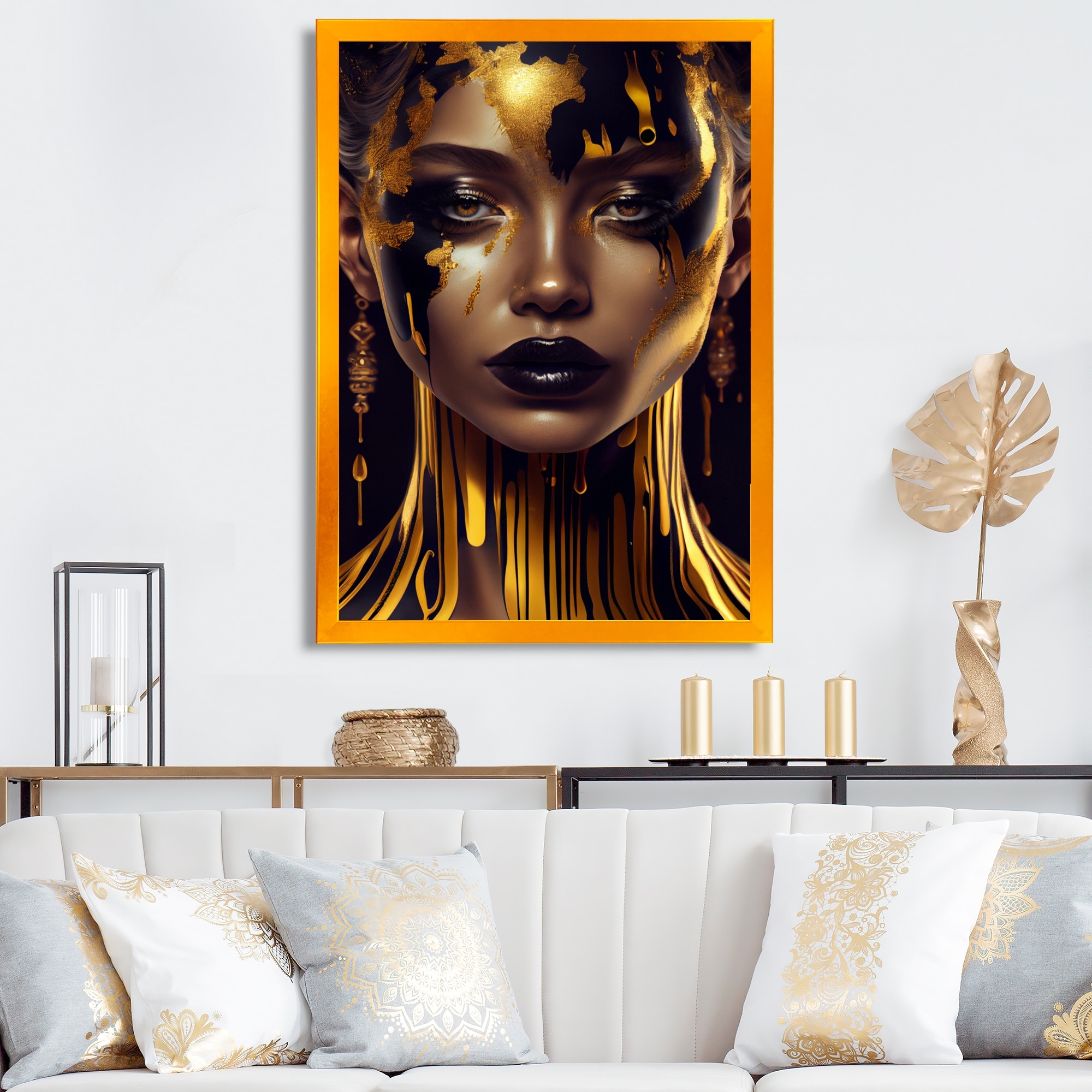 Designart "Sensual Liquid Gold Woman V" Contemporary Glam Framed Art Print