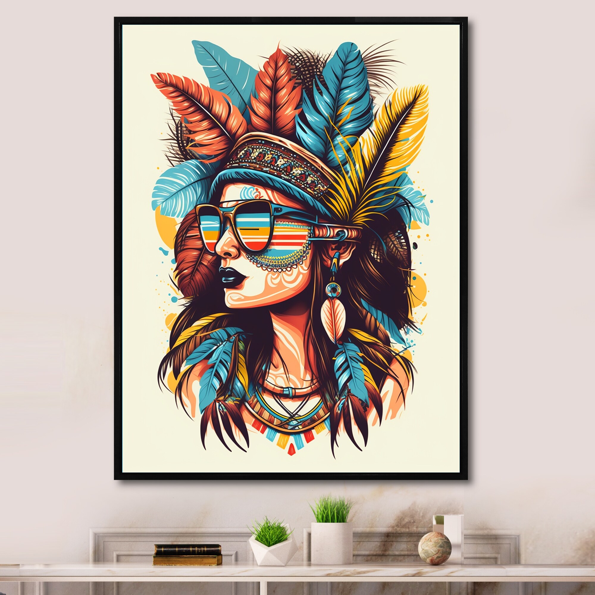 Designart "Contemporary Bohemian Woman VIII" Boho Woman Framed Canvas Wall Art