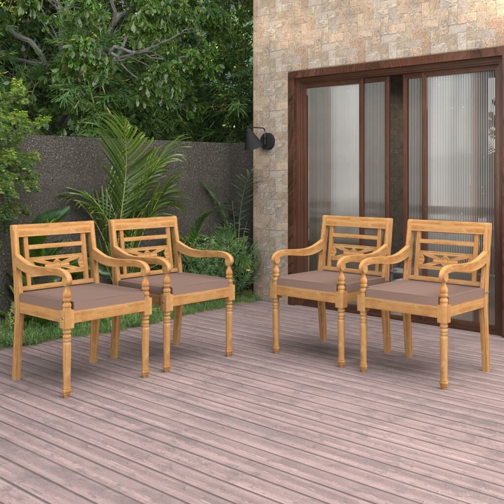 vidaXL Batavia Chairs 4 pcs with Cushions Solid Teak Wood - 21.7" x 20.3" x 33.1"
