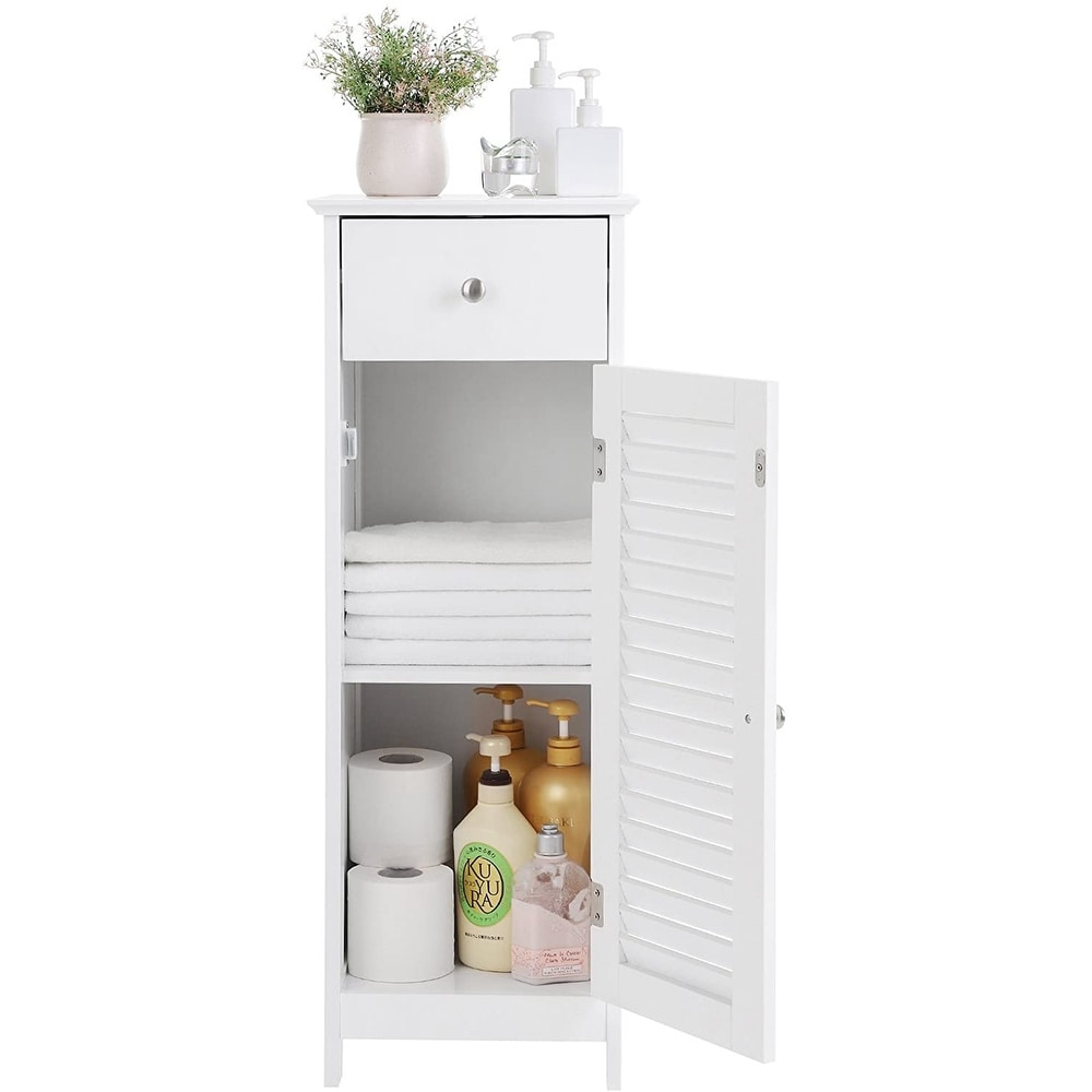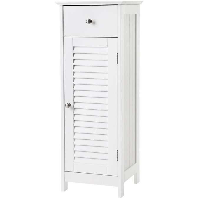 Bathroom Floor Cabinet Storage Organizer Set with Drawer and Single Shutter Door Wooden - White