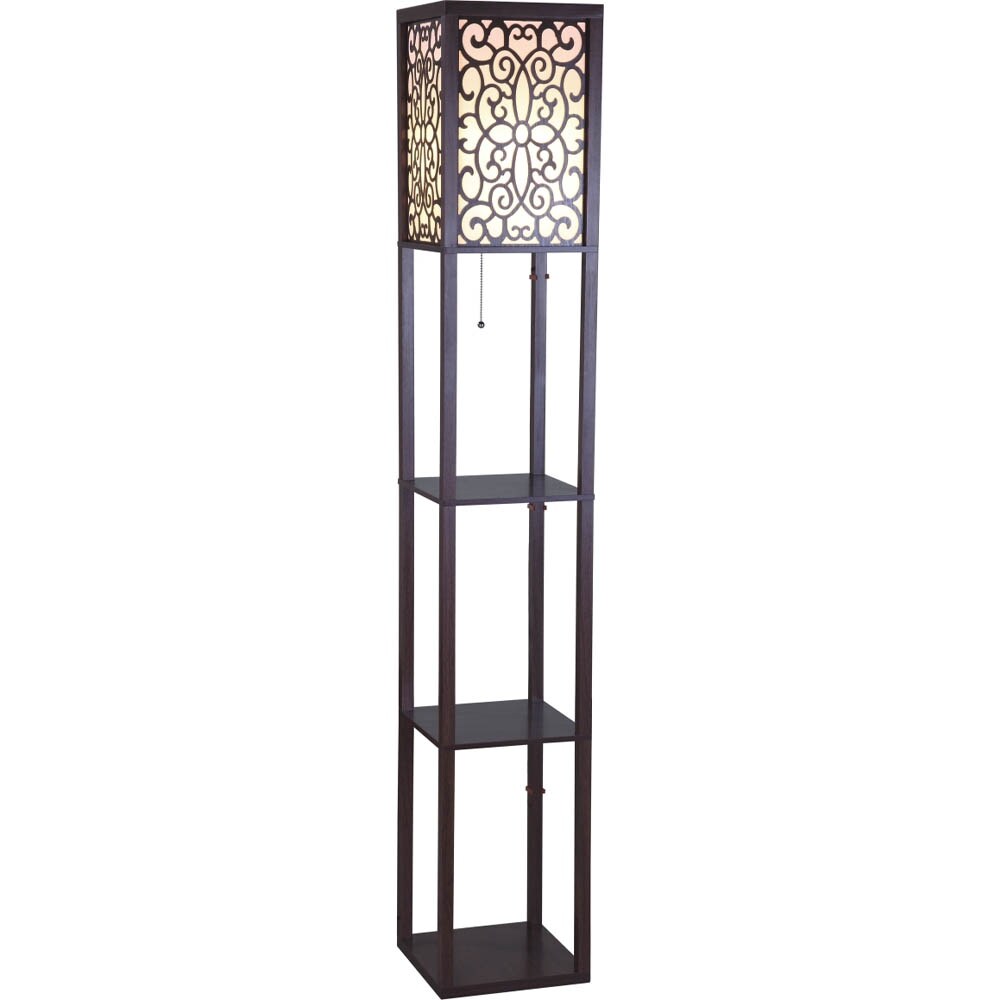 SINTECHNO Brown Wooden Shelf 63" Column Floor Lamp
