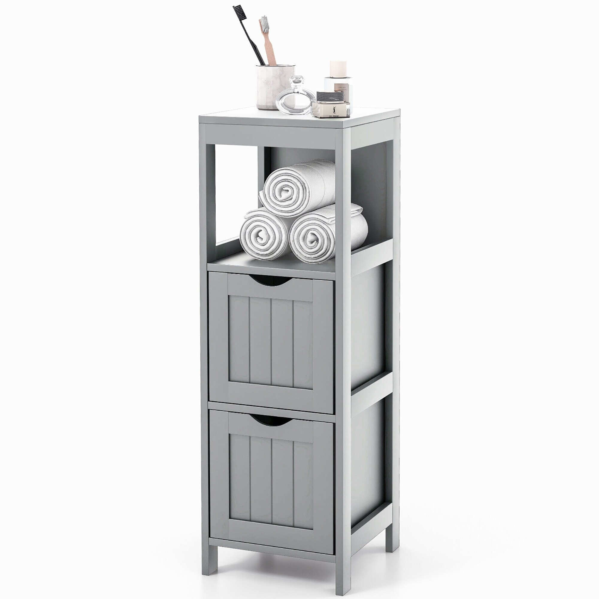 Costway Bathroom Floor Cabinet Side Wooden Storage Organizer with