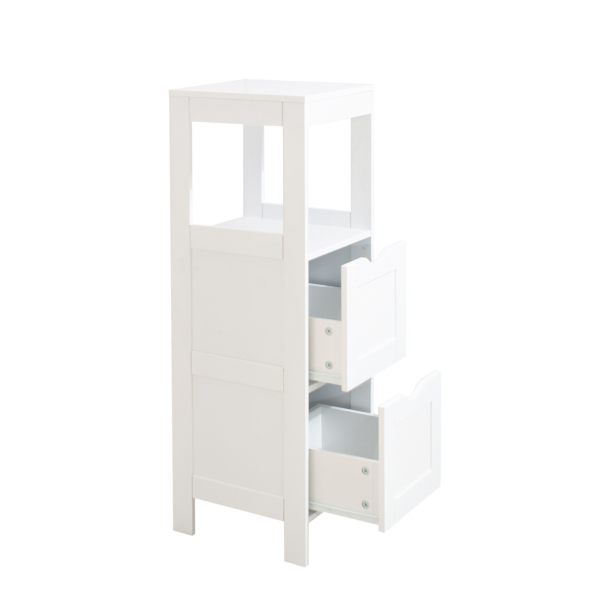 White Floor Cabinet with 2 Drawer Wooden Storage Cabinet