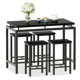 Mieres Minimalist Industrial Style Wooden Top 5 Pieces Dining Table Set with Four Stools for Ktichen and Dining Room
