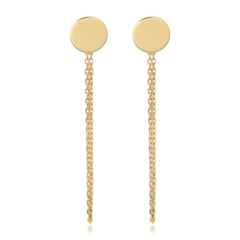 14K Yellow Gold Drape Chain Disc Earrings Jewelry for Women