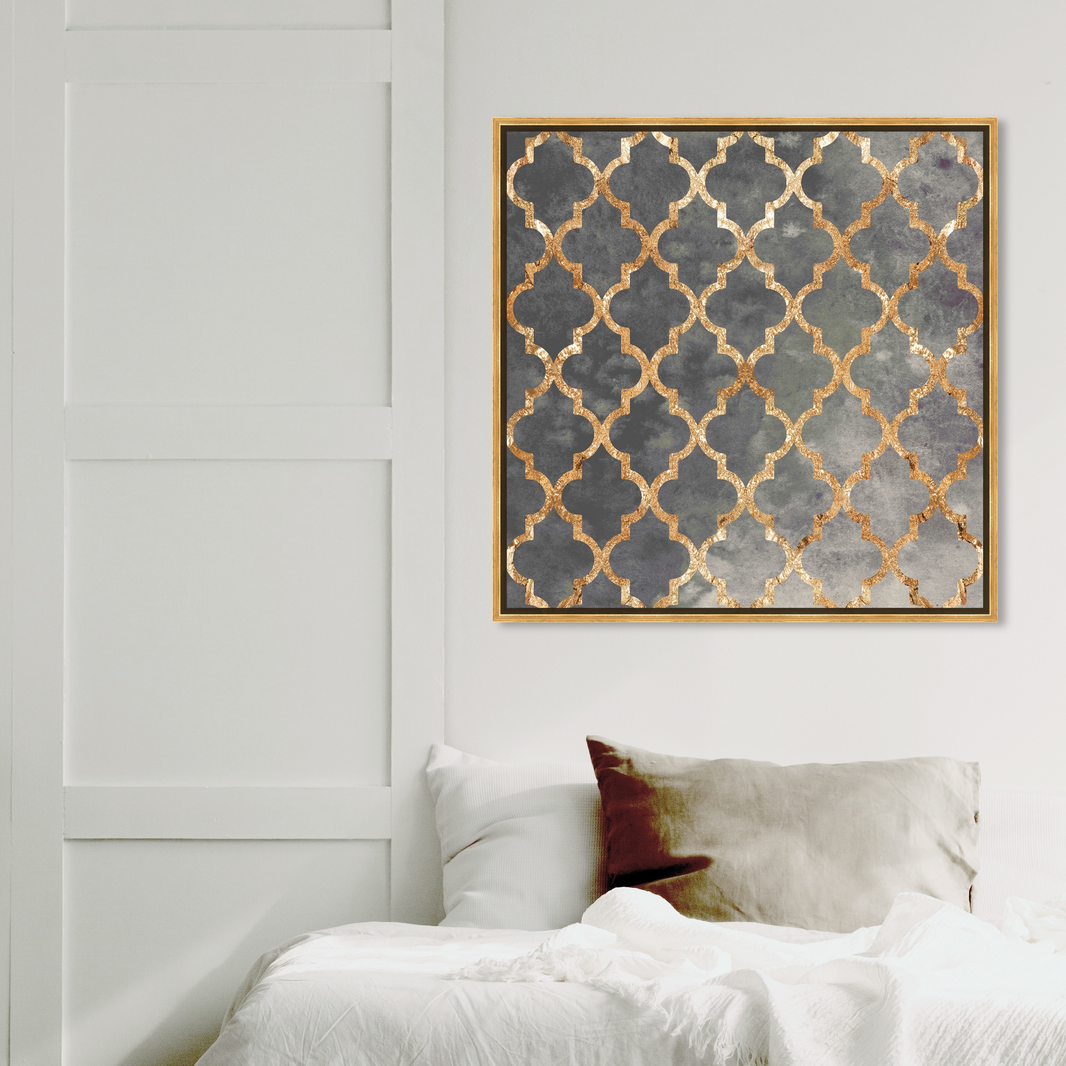 Oliver Gal 'Arabesque Gold' Abstract Wall Art Framed Canvas Print Patterns - Gray, Gold