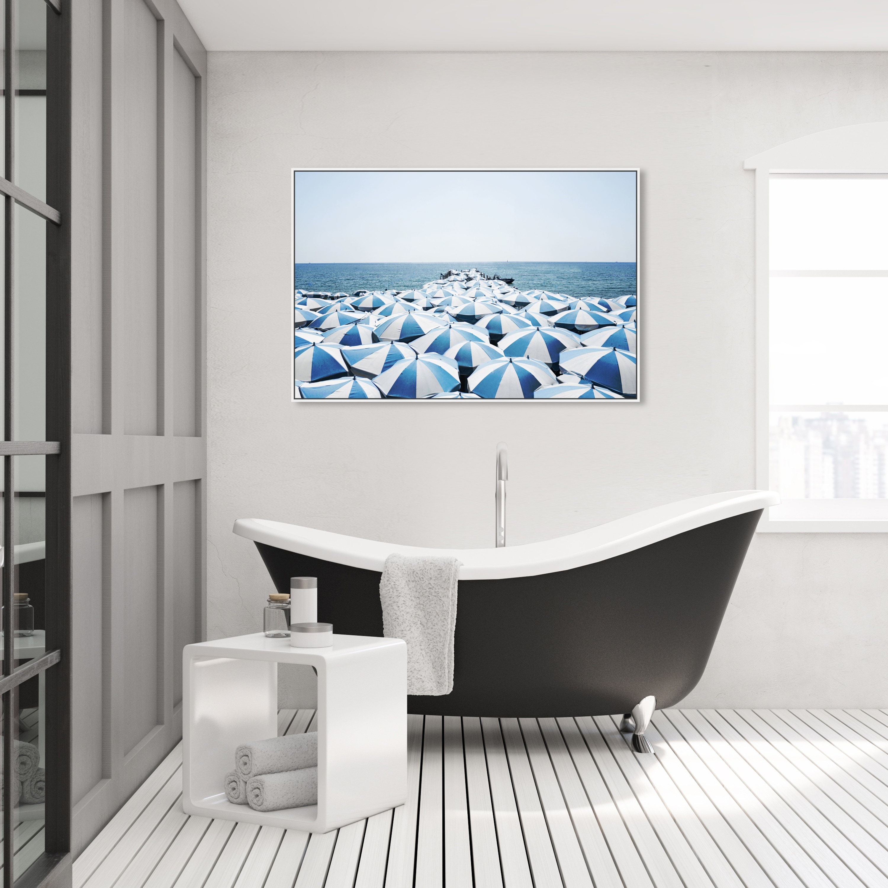 Oliver Gal 'Blue Umbrella Beach' Nautical and Coastal Blue Wall Art Canvas Print