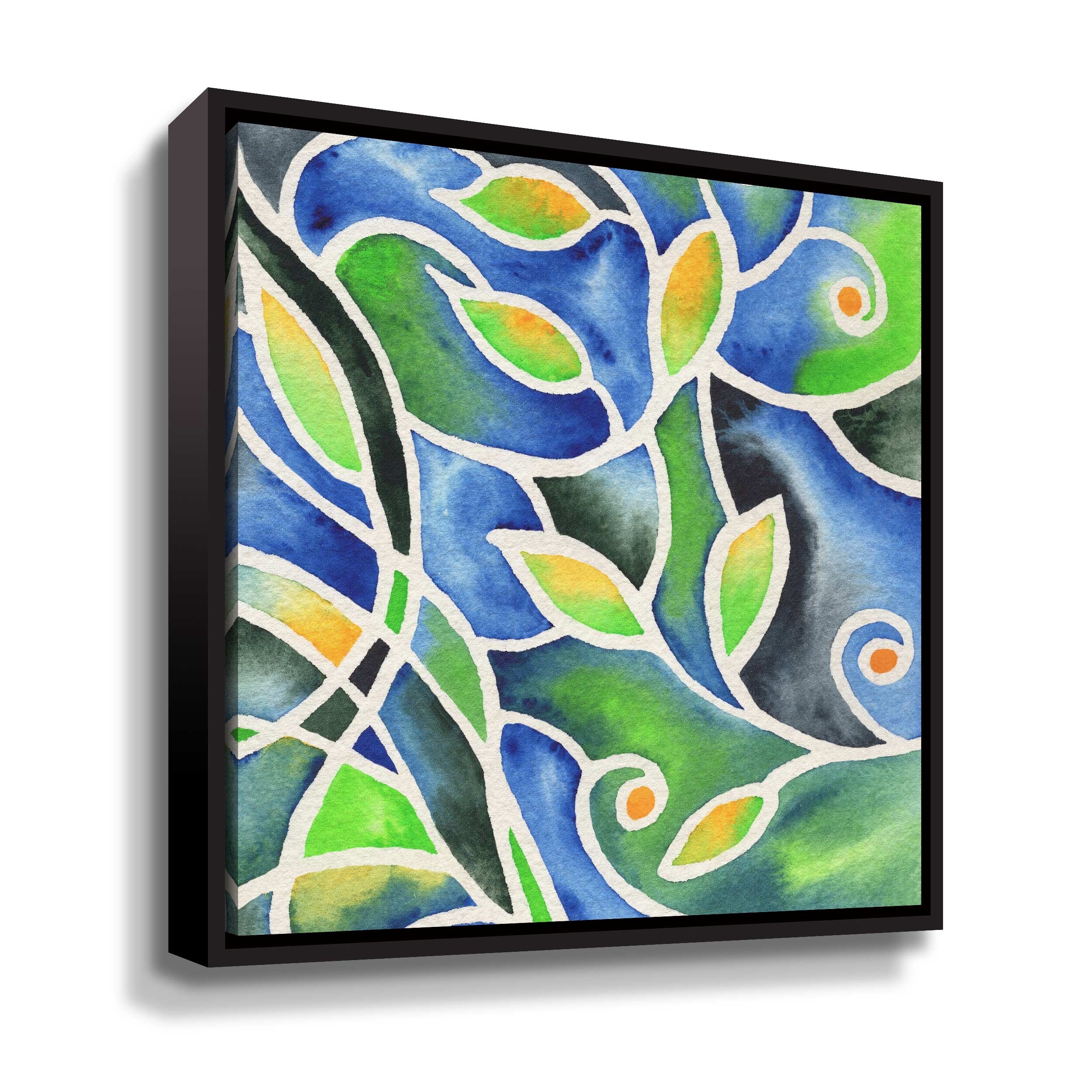 Whimsical Organic Leaves Batik Style Watercolor Pattern by Irina Sztukowski Gallery Wrapped Floater-framed Canvas