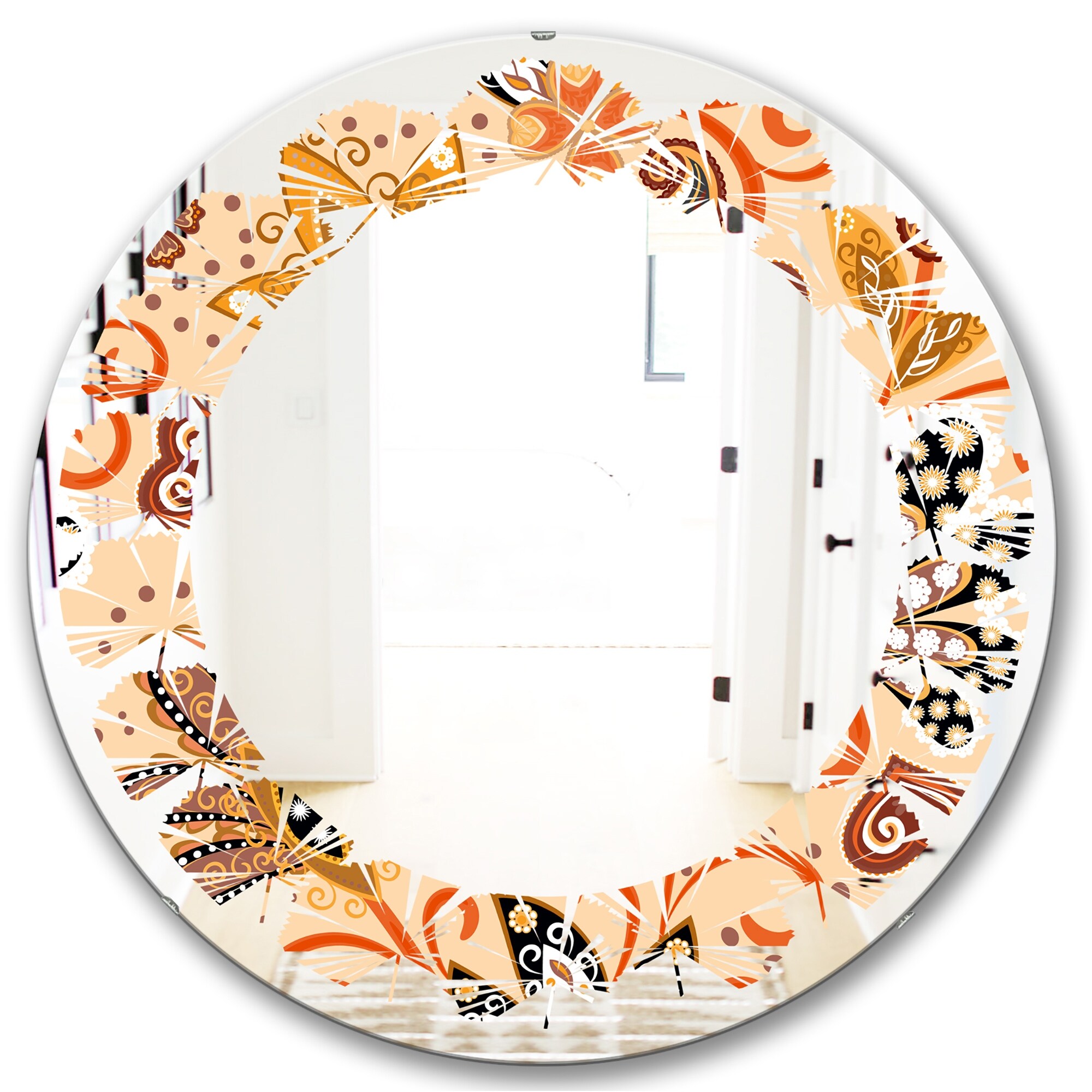 Designart 'Retro Indian Floral Batik III' Printed Modern Round or Oval Wall Mirror - Leaves