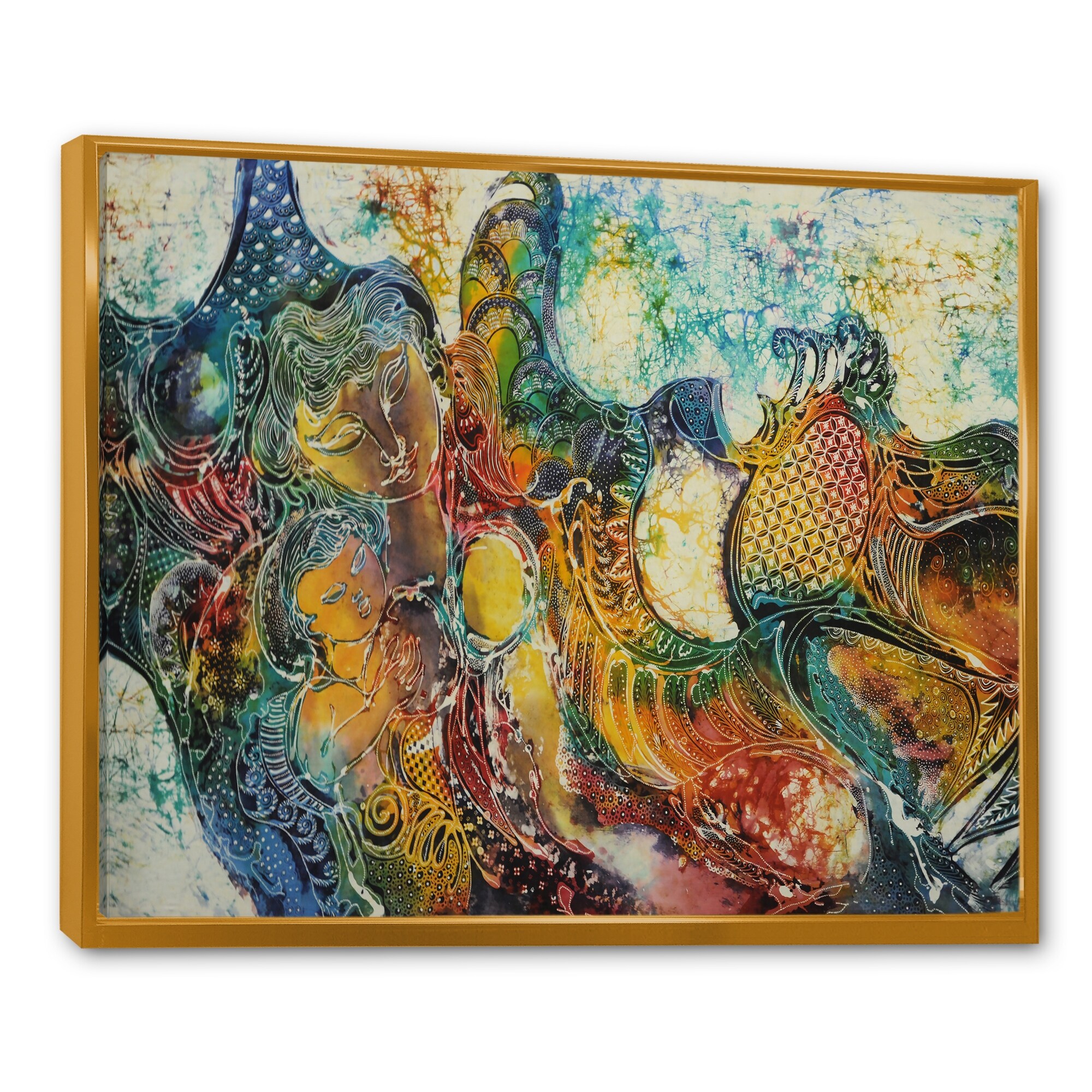Designart "Mother With Child in Batik" Modern Framed Canvas Wall Art Print